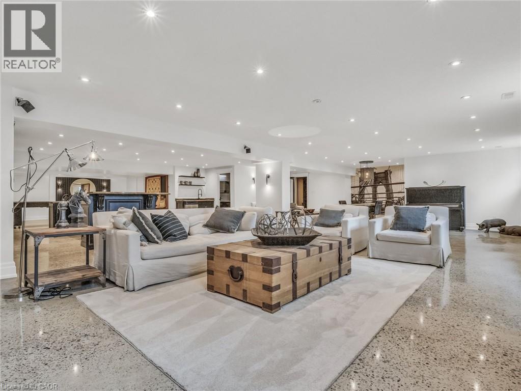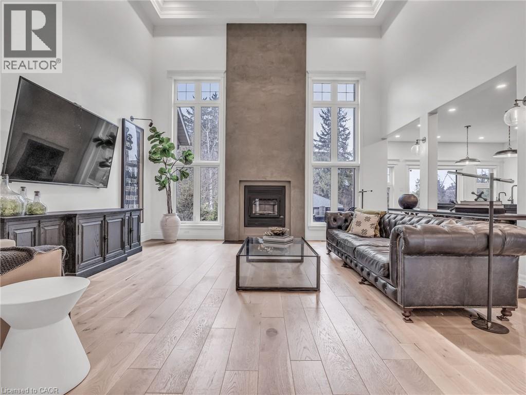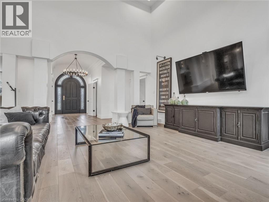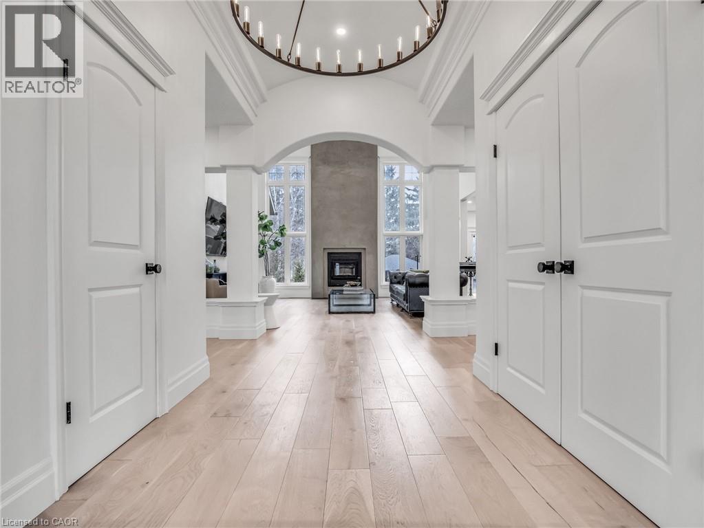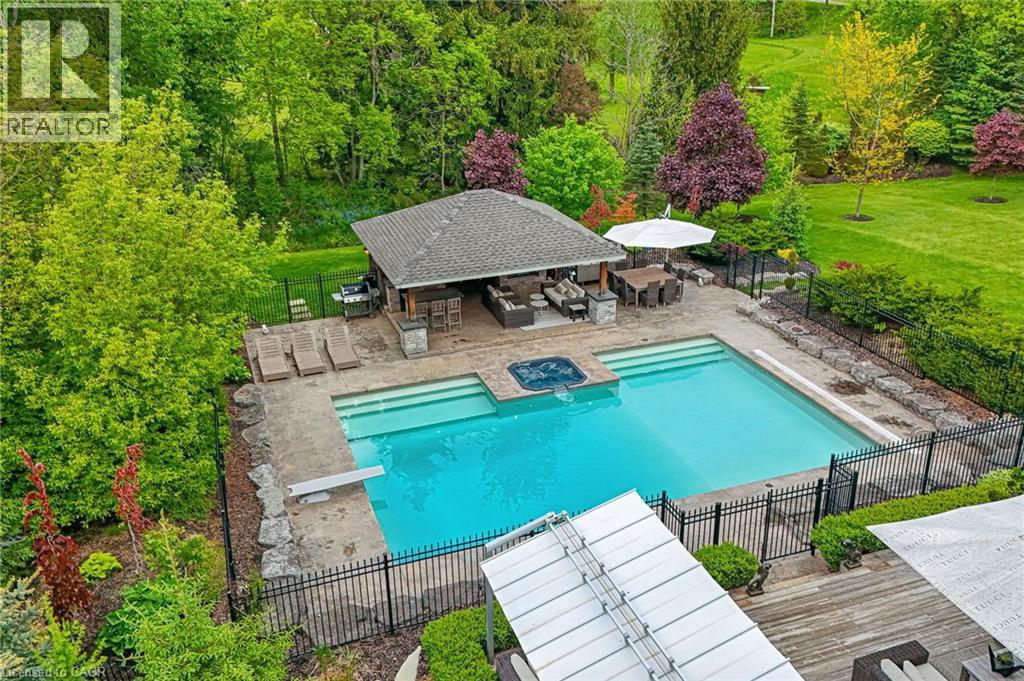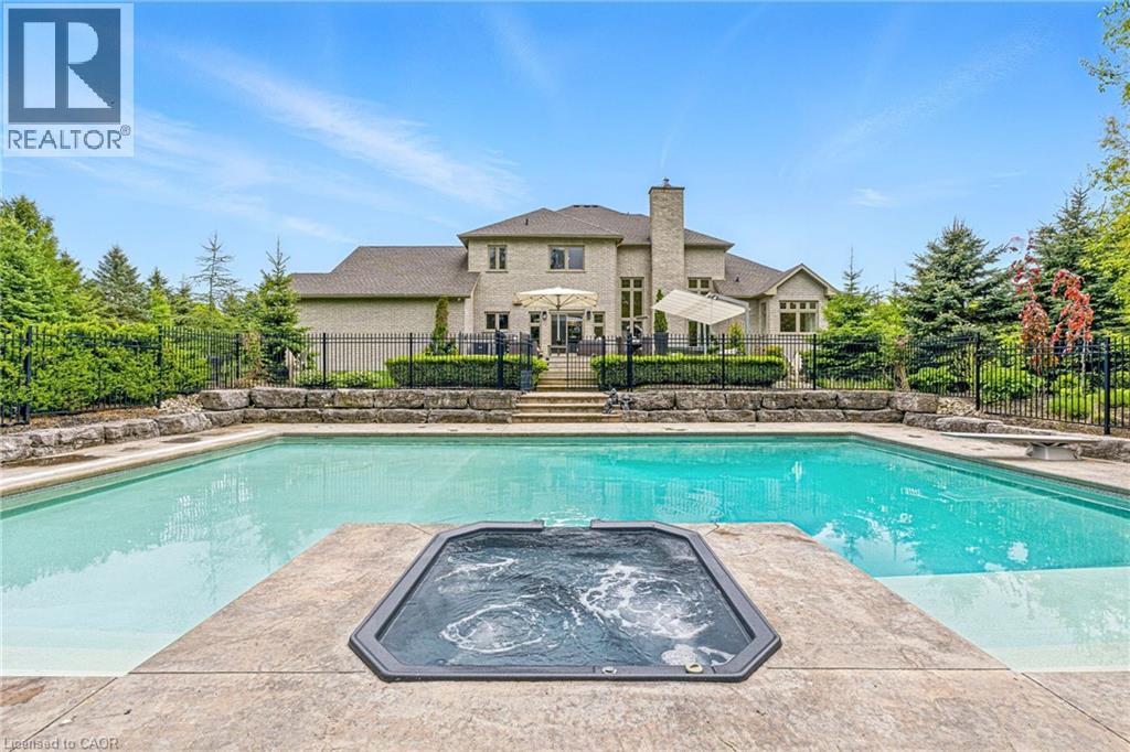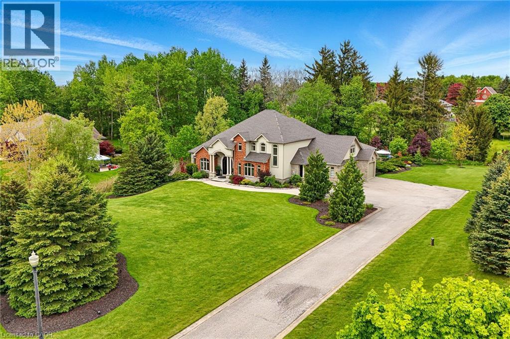 This is your Dynasty! Nestled on one of the most prestigious streets in Petersburg, this grand home sits on a 1.33-acre lot, showcasing craftsmanship and quality. Featuring 4 bedrooms, 5 baths, and triple-car garage. Step through the custom oversized wood front door or auxiliary entrance and experience clean, timeless décor. A two-story living room with coffered ceilings and a floor-to-ceiling fireplace sets the stage. A custom kitchen, with waterfall island, built-in Thermador appliances, and separate servery, alongside main-floor laundry, office, and a luxurious primary suite with walk-in closet and spa-like ensuite, including a two-person glass shower, soaker tub, heated floors, and high-end fixtures. Upstairs hosts 3 spacious bedrooms and 2 renovated bathrooms. The finished basement offers polished concrete floors, a central bar, wine cellar, games room, and updated bath. Professionally landscaped grounds feature trees, shrubs, rock, and lighting. The backyard is a paradise, with a heated 20x40 pool, built-in spa, pool house cabana with washroom, changeroom, dining area, and lounge with gas fireplace. A multi-level deck includes a hot tub, natural gas hookups for a fire table and BBQ. Adjacent greenspace offers potential for an outdoor rink, sports court, or workshop. This architectural masterpiece embodies luxury and convenience at every turn. With high-end finishes, state-of-the-art appliances, and thoughtfully designed spaces, it is the epitome of comfort and elegance; an unrivaled retreat. (id:4069)