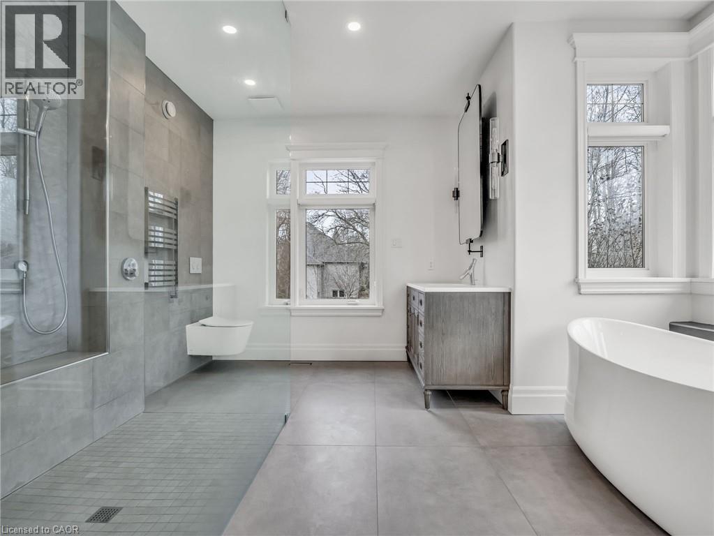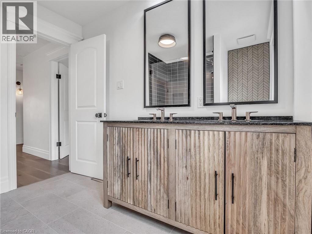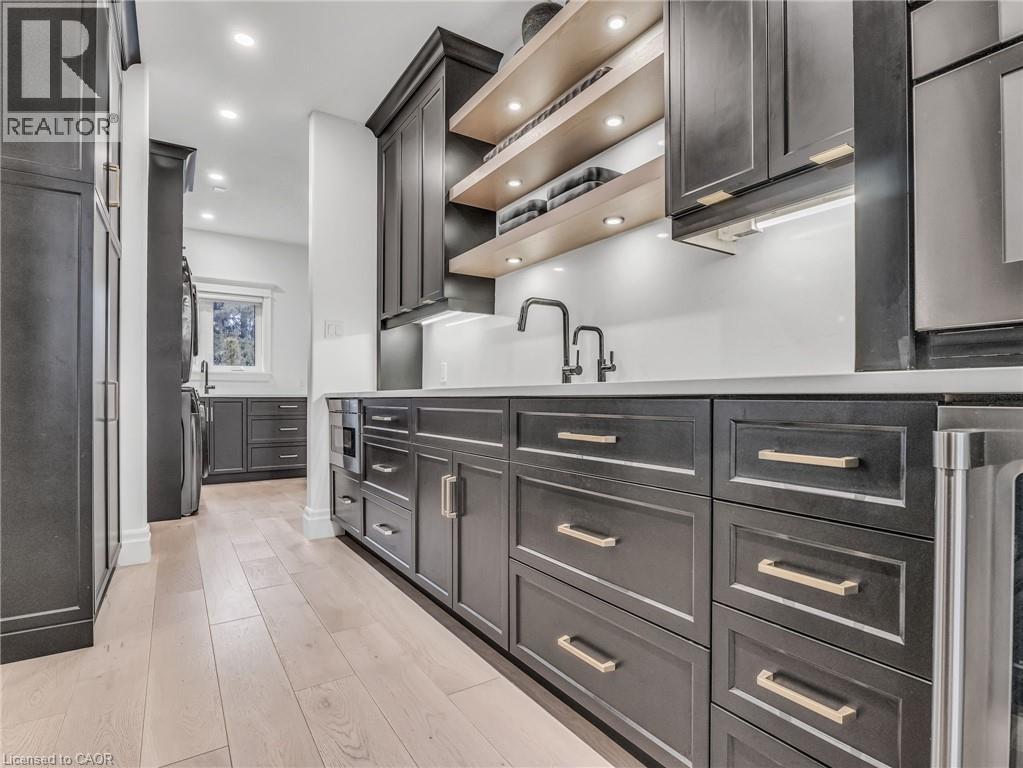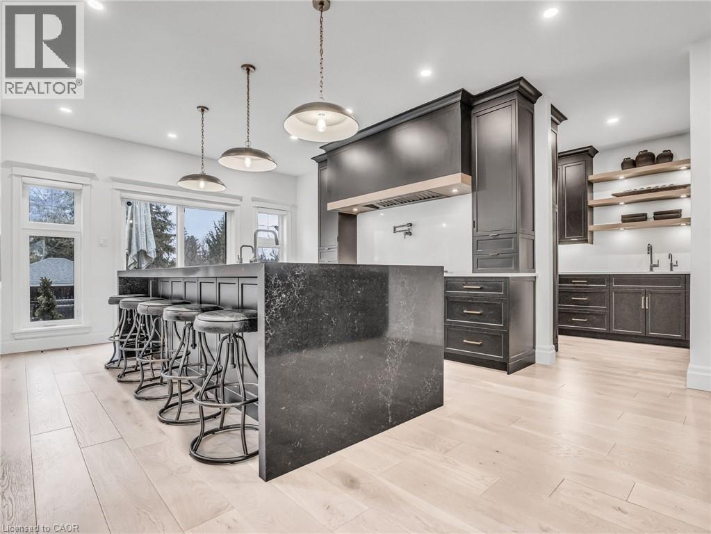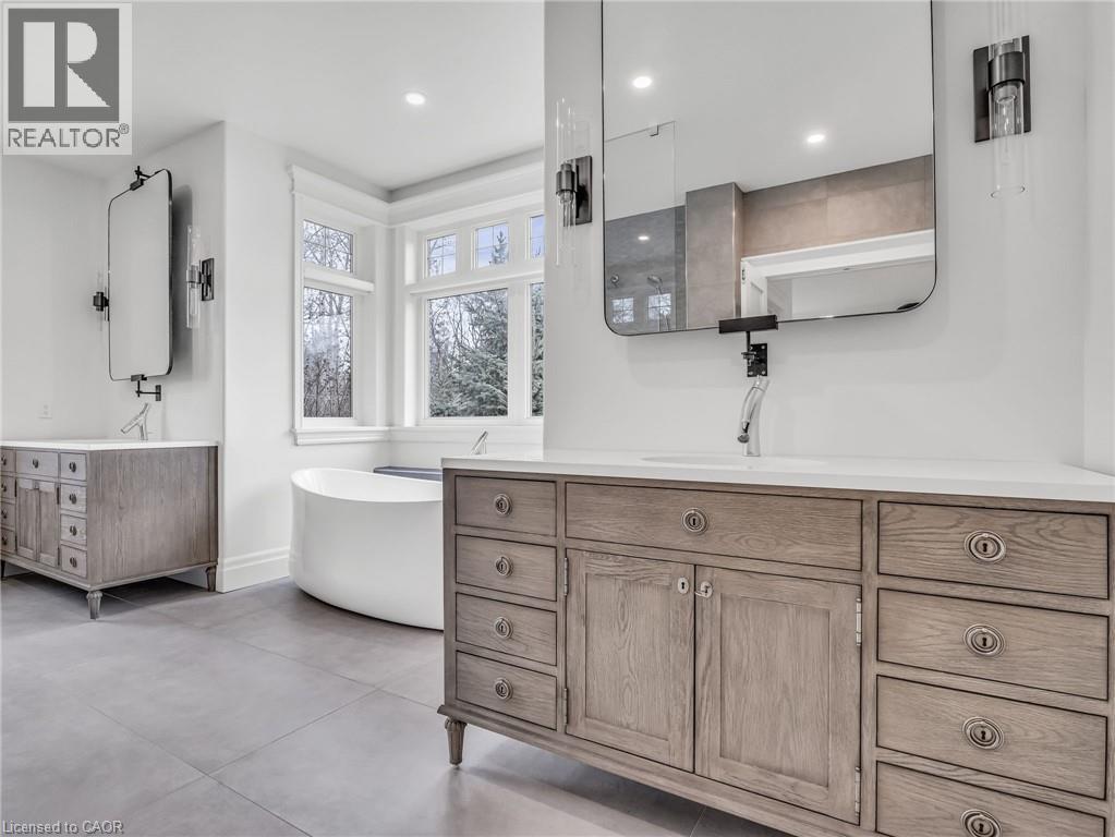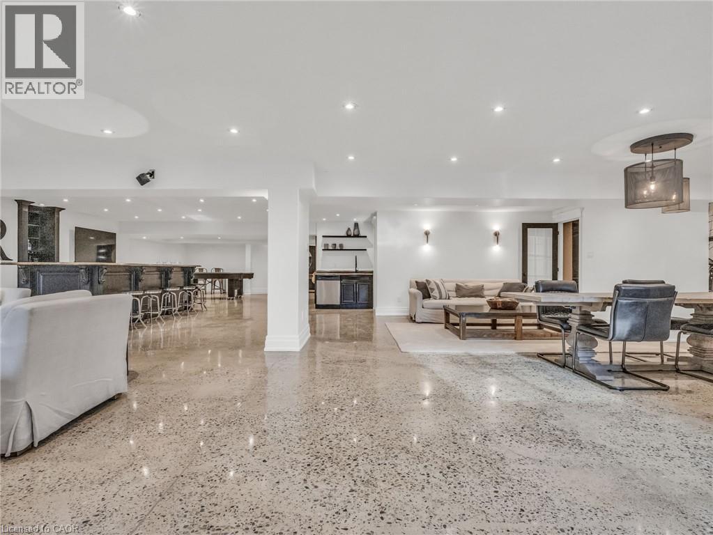 This is your Dynasty! Nestled on one of the most prestigious streets in Petersburg, this grand home sits on a 1.33-acre lot, showcasing craftsmanship and quality. Featuring 4 bedrooms, 5 baths, and triple-car garage. Step through the custom oversized wood front door or auxiliary entrance and experience clean, timeless décor. A two-story living room with coffered ceilings and a floor-to-ceiling fireplace sets the stage. A custom kitchen, with waterfall island, built-in Thermador appliances, and separate servery, alongside main-floor laundry, office, and a luxurious primary suite with walk-in closet and spa-like ensuite, including a two-person glass shower, soaker tub, heated floors, and high-end fixtures. Upstairs hosts 3 spacious bedrooms and 2 renovated bathrooms. The finished basement offers polished concrete floors, a central bar, wine cellar, games room, and updated bath. Professionally landscaped grounds feature trees, shrubs, rock, and lighting. The backyard is a paradise, with a heated 20x40 pool, built-in spa, pool house cabana with washroom, changeroom, dining area, and lounge with gas fireplace. A multi-level deck includes a hot tub, natural gas hookups for a fire table and BBQ. Adjacent greenspace offers potential for an outdoor rink, sports court, or workshop. This architectural masterpiece embodies luxury and convenience at every turn. With high-end finishes, state-of-the-art appliances, and thoughtfully designed spaces, it is the epitome of comfort and elegance; an unrivaled retreat. (id:4069)