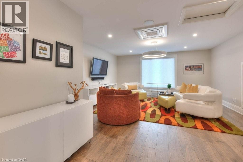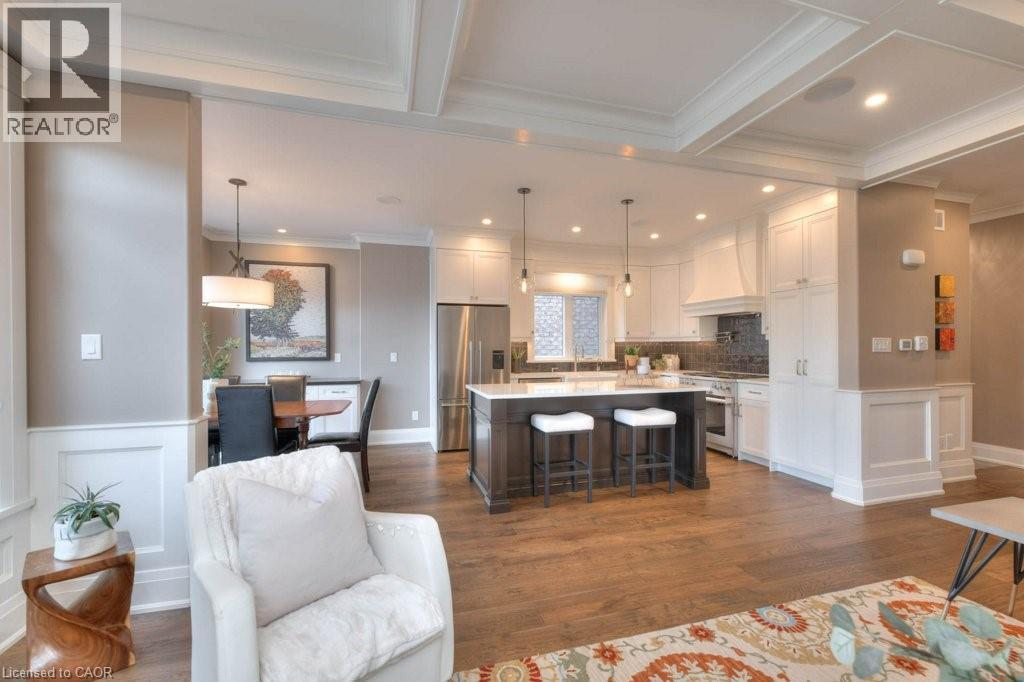 Stunning semi-detached home offering over 3,500 sq. ft. of carpet-free, professionally finished living space just steps from the heart of Uptown Waterloo. Enjoy walkable access to the city’s best restaurants, shops, cafes, trails, and the LRT—this location is second to none for lifestyle and convenience. Inside, you'll find 3 spacious bedrooms plus a loft, 4 bathrooms, and exceptional finishes throughout. The gourmet kitchen features quartz countertops, custom cabinetry, built-in appliances, beverage fridge, apron sink, pot filler, three-line water system, and a cozy coffee nook. Elegant hardwood and porcelain tile floors, coffered ceilings, and oversized windows add warmth and light. The primary suite is a private retreat with a 9ft raised tray ceiling, two custom walk-in closets, and a spa-style ensuite with heated floors, steam shower, soaker tub, double vanity, and water closet. The upper loft includes its own HVAC system and a bathroom with heated floors and shower. Additional highlights include a main-floor office, custom mudroom with built-ins, second-floor laundry with cabinetry, and bedroom closets with organizers. The finished lower level offers high ceilings, in-floor heating, large windows, and rough-ins for a bathroom and wet bar. Premium audio throughout: 5.1 surround sound in the great room plus built-in speakers in the kitchen, den, ensuite, loft, and basement—plus two Sonos-ready rooms. The exterior is fully landscaped with a composite deck, aluminum railings, privacy fencing, wrought iron gate, concrete walkway, and a paved driveway. This home perfectly blends luxury, low-maintenance living, and an unbeatable Uptown location. (id:4069)