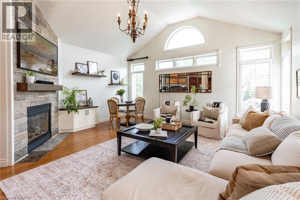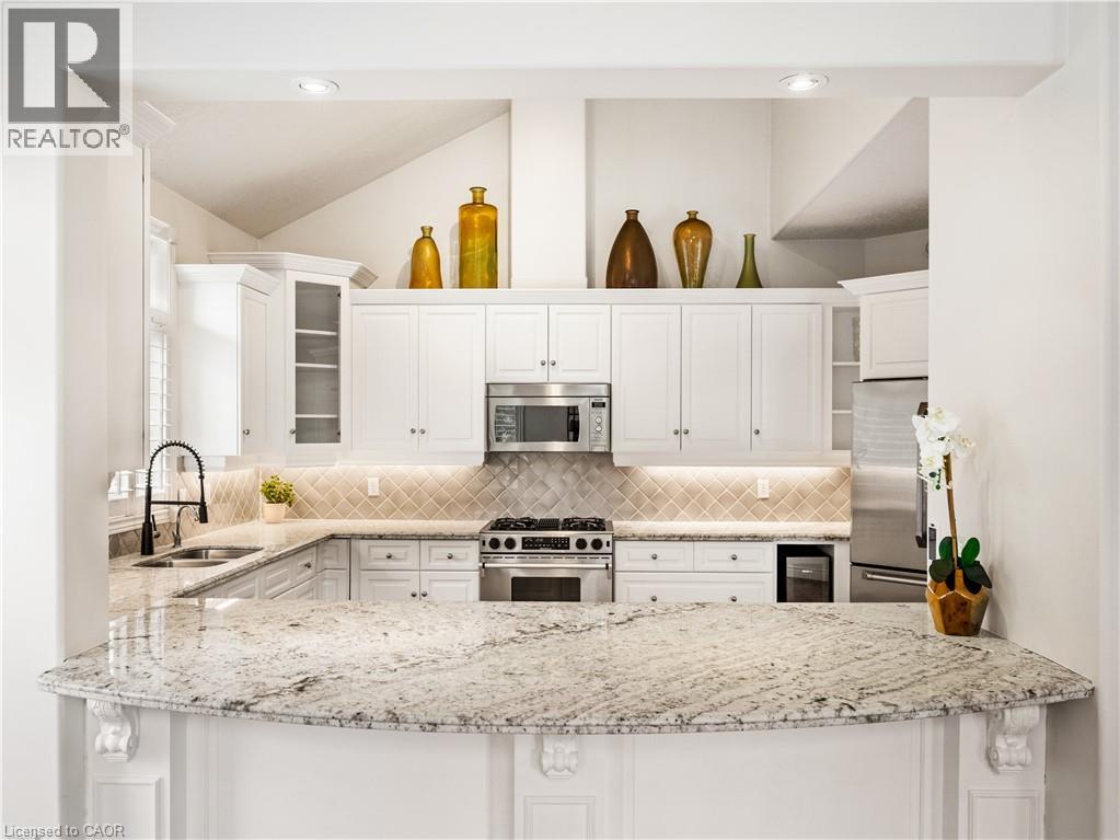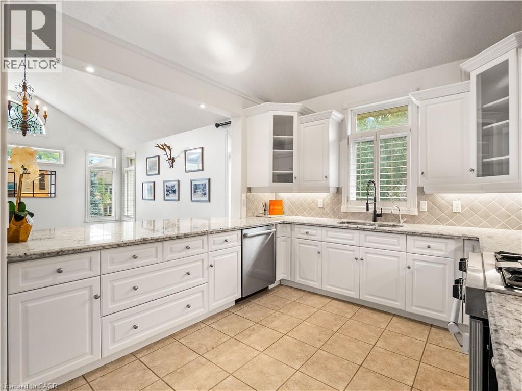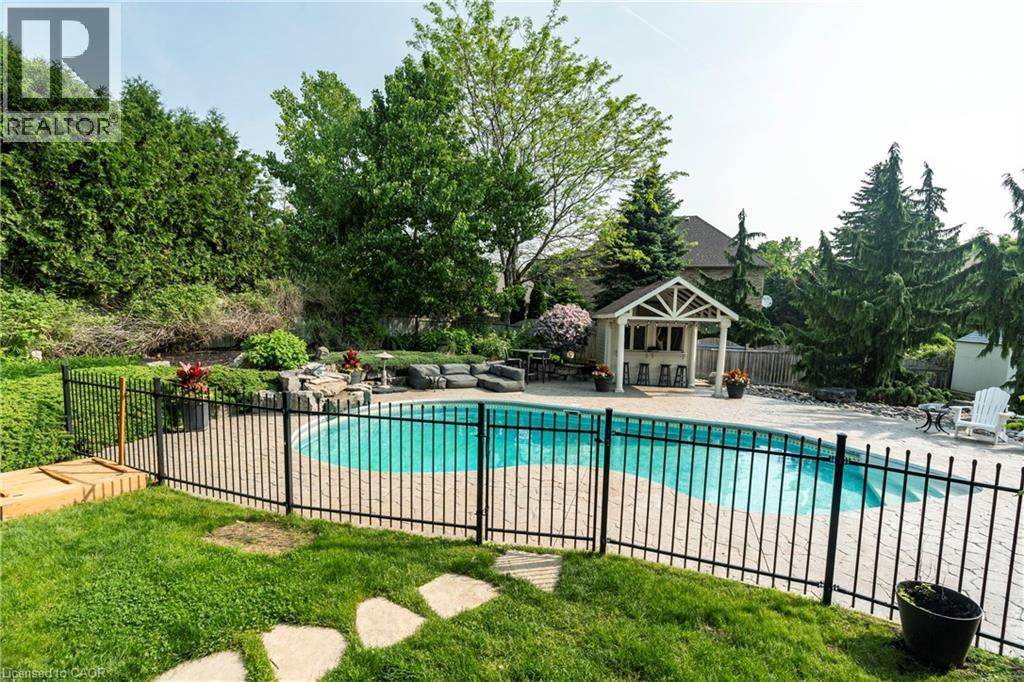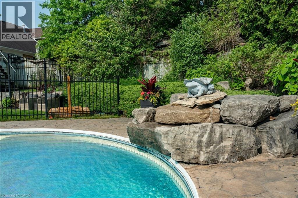 Welcome to luxury living on one of Waterloo’s most desirable courts! This custom-built all-brick bungalow by Milla Homes offers 3,330 sq.ft. of refined living space, highlighted by vaulted ceilings, hickory-style hardwood, and premium finishes throughout. The main floor showcases a spacious primary suite with tray ceiling, walk-in closet, and a spa-inspired ensuite featuring a whirlpool tub and glass steam shower. A versatile second bedroom or office is paired with a stylish 3-piece bath. The chef’s kitchen is a showpiece with granite counters, stainless steel appliances, and a distinctive circular island opening onto the great room with a double-sided fireplace and formal dining area. The bright walk-out basement provides exceptional flexibility, ideal for an in-law suite or independent space for older children. Recently updated with new flooring, it features large windows, a kitchenette and bar with fridge, sink, and stove hookup, gas fireplace, two bedrooms, and a full bath. One bedroom is designed as a second primary suite, complete with walk-in closet and ensuite access, creating a perfect private retreat. Step outside to your secluded backyard oasis, offering professional landscaping, a large deck, in-ground pool with rock waterfall, hot tub, cabana bar, stone pathways, and full fencing for privacy. All this, just minutes to top schools, Molly Bean Playground, shopping, trails, and everyday amenities (id:4069)