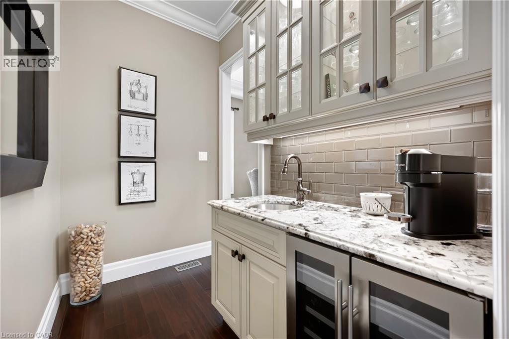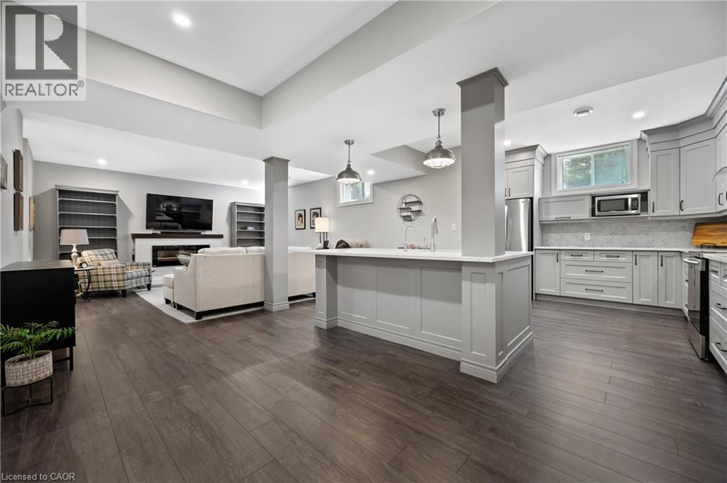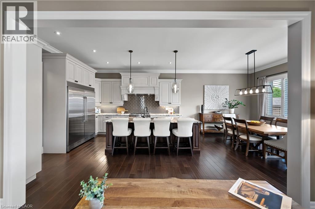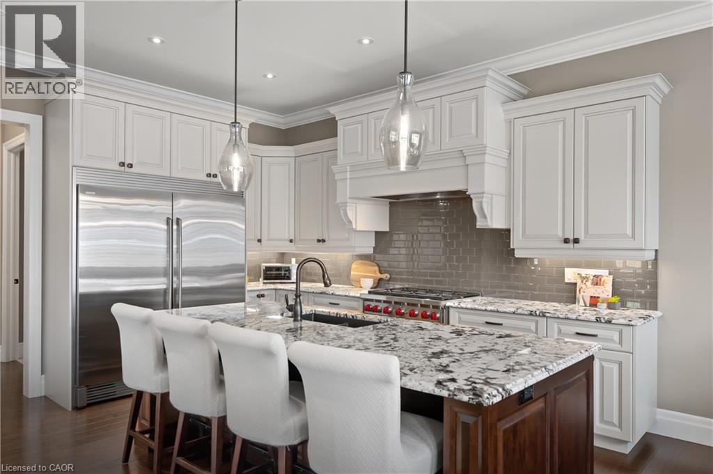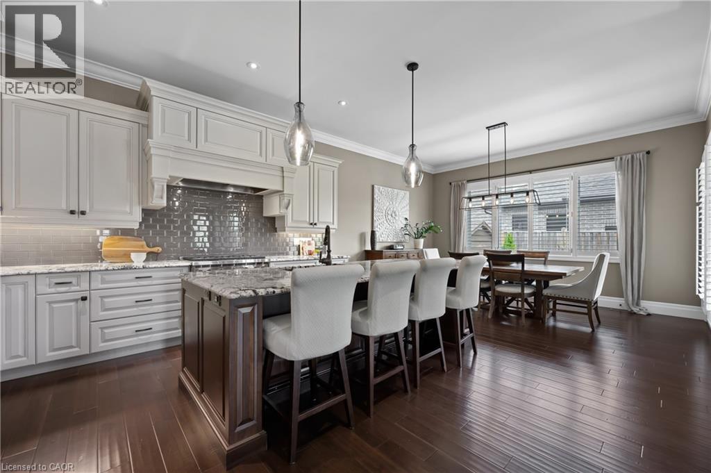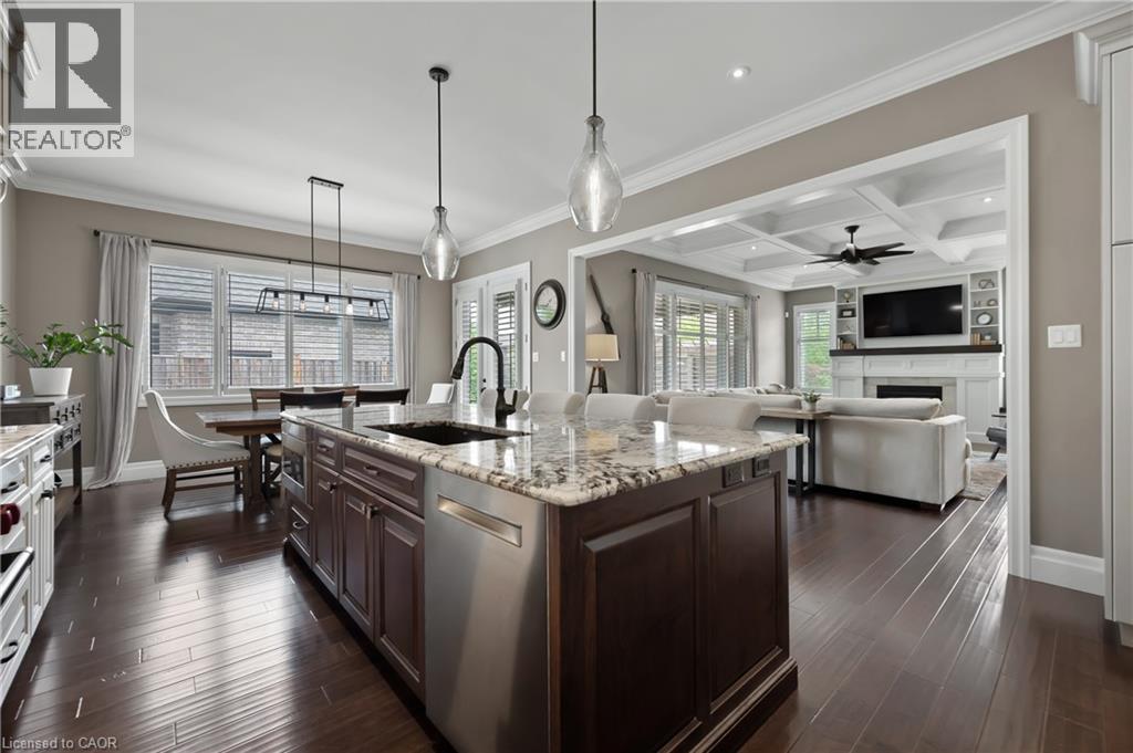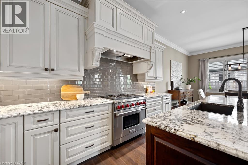 Luxury Living w/ Accessory Apartment in Carriage Crossing! This spectacular, custom Klondike-built executive home is nestled on a premium corner lot in Waterloo’s prestigious Carriage Crossing. Loaded w/ luxurious upgrades, & offering 5,100+ SF of beautifully finished living space, this 5 bed, 5 bath home includes a full accessory apartment/in-law suite w/ private walk-up—ideal for extended family, guests, or added income. Step inside to a grand foyer that opens to a front office/living rm & a formal dining rm w/ tray ceiling, seamlessly connected to the servery & butler’s pantry. At the heart of the home is the designer kitchen, featuring granite counters, premium appls, under-cab lighting, lrg centre island, & a bright breakfast area w/ walkout to the bkyard. The adjoining great rm features coffered ceilings, a gas FP, & custom built-ins. A powder rm & mudrm w/ built-ins complete the main flr. Upstairs, the primary suite offers tray ceiling detail, walk-in closet, & a spa-like 5-pc ensuite w/ soaker tub, tiled glass shower, dual vanity. 3 additional bedrms all have walk-in closets & bathrm access—one w/ a 3-pc ensuite, & 2 sharing a 4-pc Jack & Jill bath. Convenient 2nd-flr laundry. The finished walk-up basement functions as a full accessory apt w/ oversized windows, modern kitchen, spacious family rm w/ electric FP, 5-pc bath, lrg bedrm w/ walk-in closet, & ample storage. Throughout: 10' main flr ceilings, hrdwd flrs, porcelain tile, crown moulding, ceiling treatments, California shutters, potlights, upgraded lighting, & granite/quartz counters. Exterior features interlock driveway (parking for 7), manicured landscaping, covered patio, private/partially fenced yard w/ shed. Prime location: top rated schools, RIM Park, Grey Silo Golf Club, Farmer’s Market, trails, parks, & major employers. Quick HWY access, universities, & amenities. A rare opportunity to own a move-in ready luxury home w/ unmatched versatility in one of Waterloo’s most desirable neighbourhoods! (id:4069)