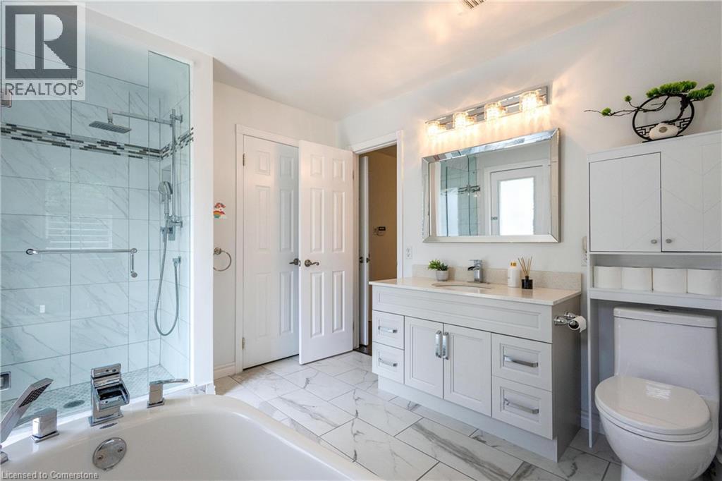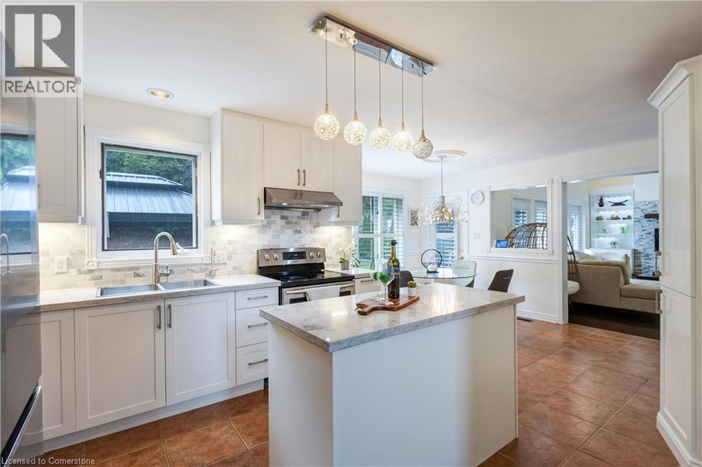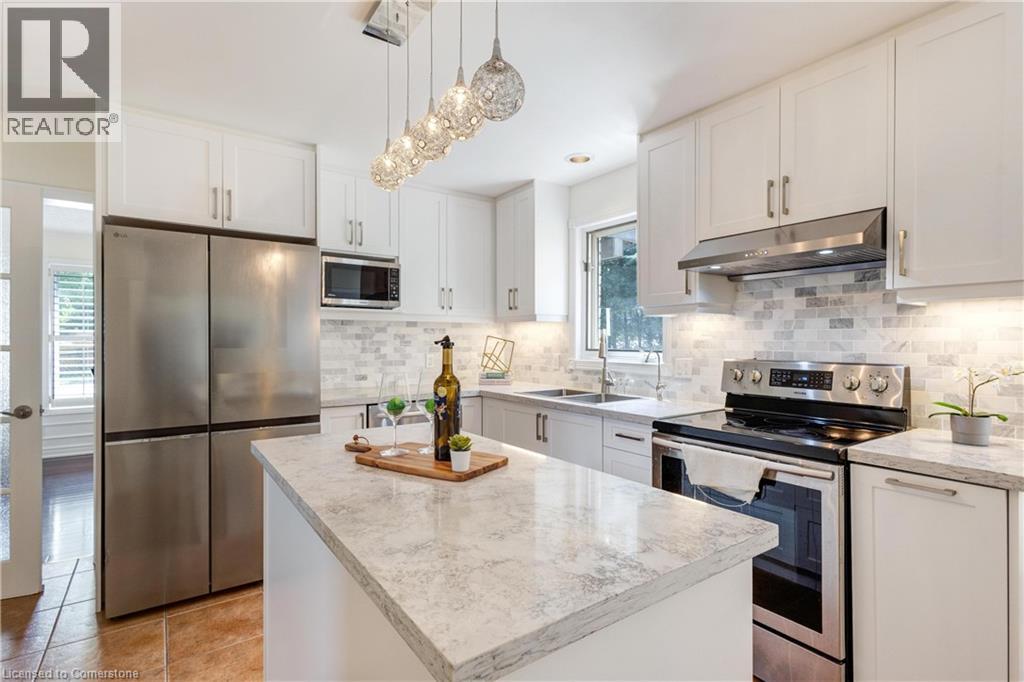 Positioned in the heart of the coveted Upper Beechwood Neighbourhood, this magnificent 4,000+ sqft (finished living space) residence offers the ultimate family lifestyle, just a 4-minute walk to Mary Johnston Public School and within the boundaries of Laurie Heights Public School - two of the area's most desirable educational institutions. Main Level Excellence:• Gourmet kitchen, featuring premium appliances & designer finishes • Sun-drenched dining room with seamless flow to the grand family room •Soaring 18' ceilings living room with cozy modern fireplace create an awe-inspiring atmosphere• Practical home office with elegant built-ins. Upper Level Sanctuary:• 4 generously-proportioned bedrooms, including a spacious primary suite• Spa-inspired ensuite and private balcony access. Lower Level Entertainment Hub:• Expansive recreation room with new flooring• Additional bedroom/exercise room with 3pc bathroom Outdoor Paradise:• $40,000+ in landscaping investments• Professionally designed stone patio • Fully fenced private yard with mature trees This isn't just a house - it's a gateway to the best family living, with walk-to-school convenience and premium amenities that cater to every lifestyle need. (id:4069)