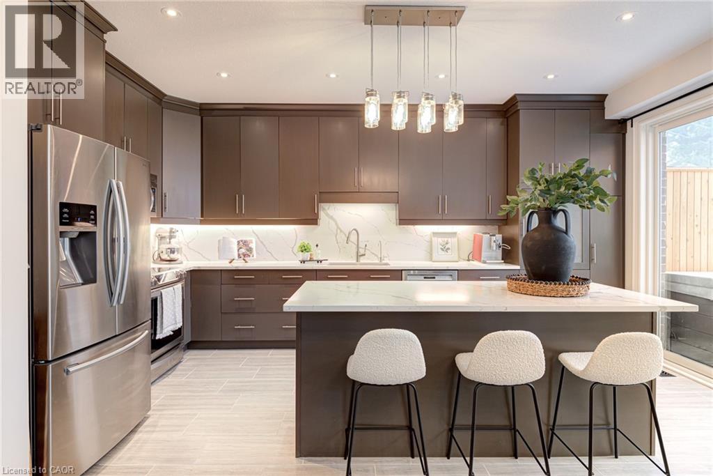 CUSTOM BUILT HOME BACKING ONTO KIWANIS PARK! Welcome to 138 Eaglecrest Street, a recently built (2016) stunning 4 Bed, 3 Bath home with backyard privacy and Western exposure. As you approach the property, you will notice the beautiful exterior complete with an extra wide garage & driveway, charming front porch, and soffit lighting. Heading inside, you are greeted with 9 foot ceilings, an open concept main floor, expanded updated kitchen (2024) with extensive quartz counters and quartz single slab backsplash, updated powder room (2024), and a bright custom cedar sunroom (2018). Heading upstairs, you will find four good-sized bedrooms, two recently updated full bathrooms (2024), and a convenient separate laundry room. Additional features of this home include hardwood flooring throughout, reverse osmosis, and income-generating solar panels. Located in an exceptional school district, the property provides direct access to Kiwanis Park, as well as close proximity to Grey Silo Golf Course, RIM Park, Conestogo Mall, and all amenities that the East end has to offer. Don’t miss the virtual tour! (id:4069)