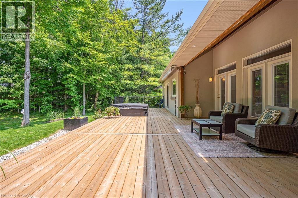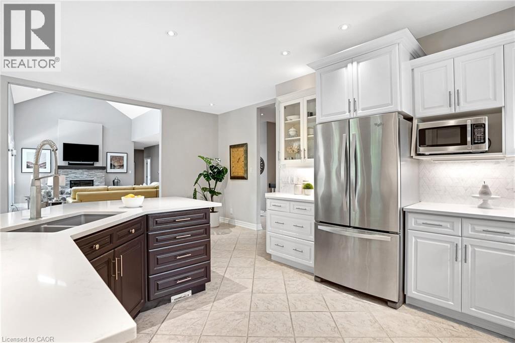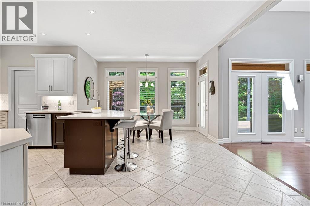 Welcome to 500 Fox Cove Place, an executive bungalow tucked away on a quiet court in East Waterloo’s prestigious Eastbridge neighbourhood. Set on a professionally landscaped half-acre lot with timeless curb appeal and a three-car garage, this property blends luxury, comfort, and versatility. Inside, double doors open to a light-filled living room with cathedral ceilings, skylights, wall-to-wall windows, and a stone-surround gas fireplace. The chef’s kitchen boasts quartz countertops, custom cabinetry, high-end appliances, and a walk-in pantry, flowing into a formal dining room perfect for entertaining. The main-floor primary suite offers deck access, a spa-inspired ensuite with soaker tub, oversized shower, dual vanity, and a massive walk-in closet. Two additional bedrooms and a stylish bath provide space for family, guests, or a home office. One of the home’s most distinctive features is the expansive 2,400+ sq. ft. lower level with a separate entrance—ideal for multi-generational living, a full in-law suite, or an income-generating secondary unit (zoning permitting). It also suits a kids’ hangout, home gym, professional office, or wellness studio, having previously functioned as a multi-station office with technology infrastructure in place. The property offers driveway parking for up to 10 vehicles, plus impressive outdoor amenities: a large updated deck (2023), hot tub with retractable awning (2024), partially fenced yard (2022), and a wired pad ready for a swim spa. Mature trees and landscaping create a private backyard retreat. Additional highlights include energy-efficient cooling (2024), heating system (2017), whole-home dehumidifier (2018), Generac generator, and security-monitored sump pump. This is a rare opportunity to own a flexible executive bungalow in one of Waterloo’s most desirable neighbourhoods. Whether upsizing, downsizing, or investing, 500 Fox Cove Place offers more than a home—it offers a lifestyle with endless potential. (id:4069)