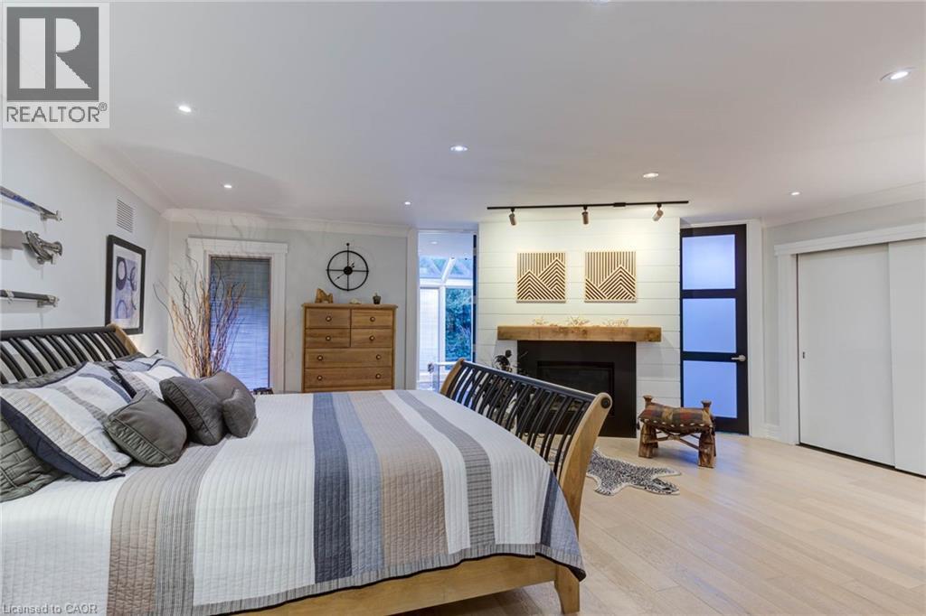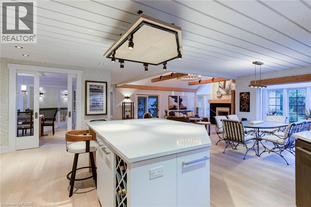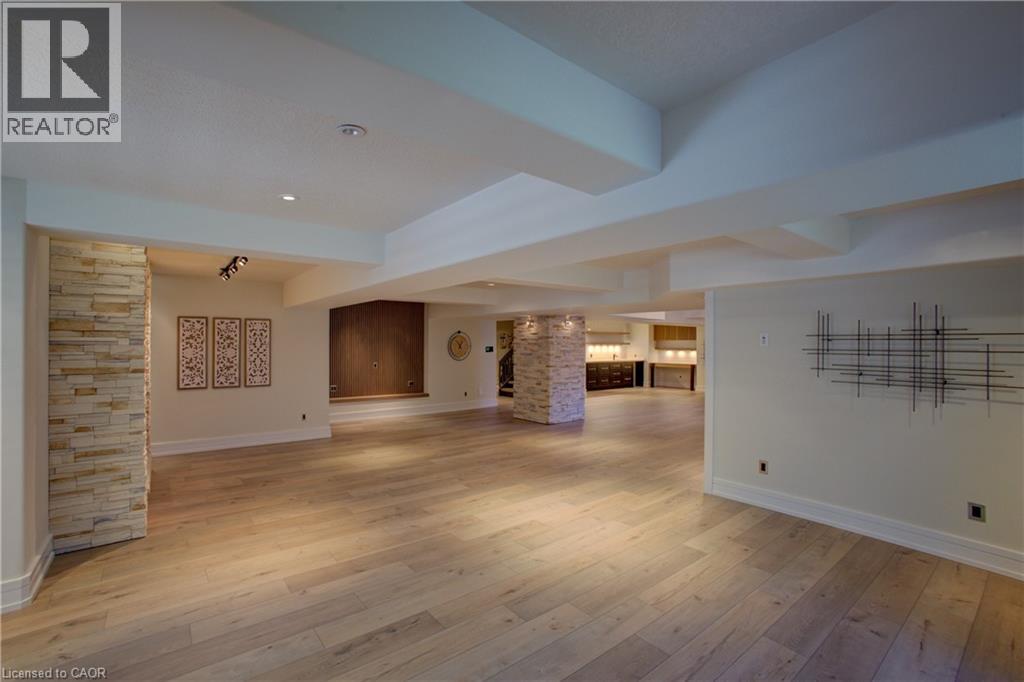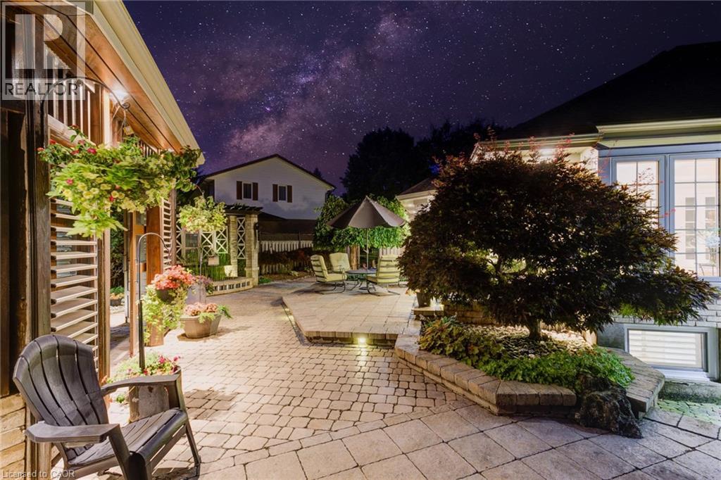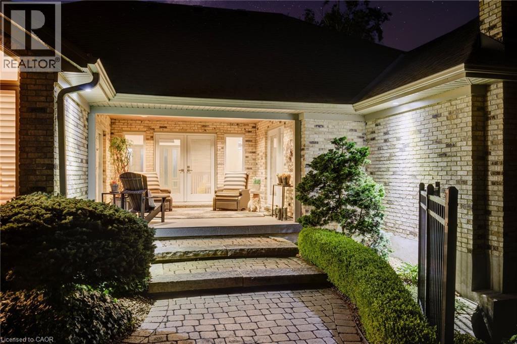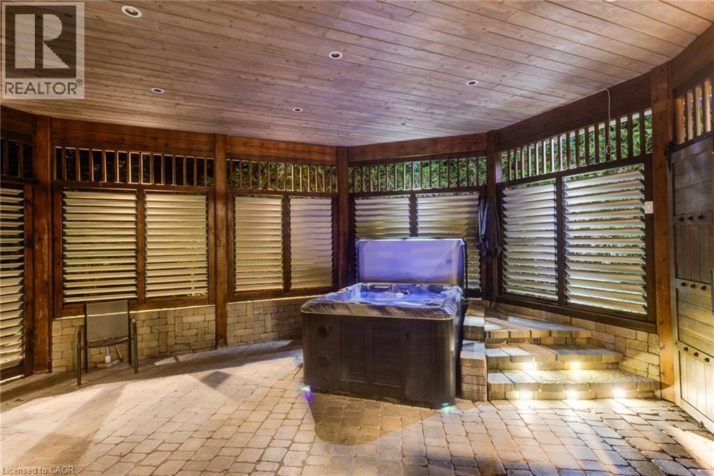 Luxurious Multi-Generational Living in Heidelberg. This custom-built bungalow blends West Coast Boho flair with rustic modern elegance, offering over 6,435 sq. ft. of extraordinary living space. Tucked away on a desirable private street just minutes from St. Jacobs Farmers’ Market and North Waterloo, this expansive home is designed for both lifestyle and comfort. The oversized double-car garage provides direct access to a fully finished in-law suite—ideal for multi-generational living or hosting guests. A grand foyer opens to an airy layout with a formal dining area and a sunken great room featuring vaulted ceilings, custom beams, and a wood-burning fireplace, all overlooking the chef-inspired kitchen with a spacious island. A tucked-away laundry room and powder room add convenience. The main level offers three bedrooms/home office options, including a primary retreat with its own fireplace and a stunning atrium-inspired ensuite filled with natural light. Three full bathrooms complete this floor. The walkout lower level has been newly updated with lighter paint, a wet bar, desk area, and modern finishes, enhancing its potential as a private suite. It includes an additional bedroom, full bathroom, and versatile living space. Outdoors, the beautifully landscaped yard is a true sanctuary with rock gardens, perennials, fire pit, waterfall, gazebo, and hot tub. With three separate patios, a shed with gas hookup, and a yard with pool potential, the possibilities for entertaining and recreation are endless. Gas lines for a BBQ or heater are already in place. A home of unparalleled character and function—this one is a must-see. Book your private showing today! (id:4069)