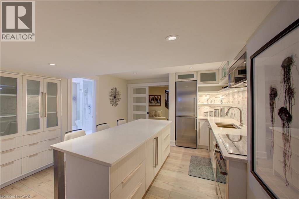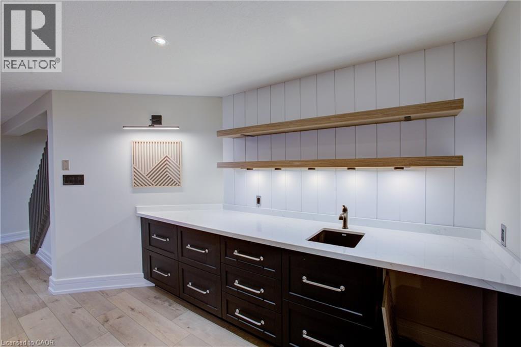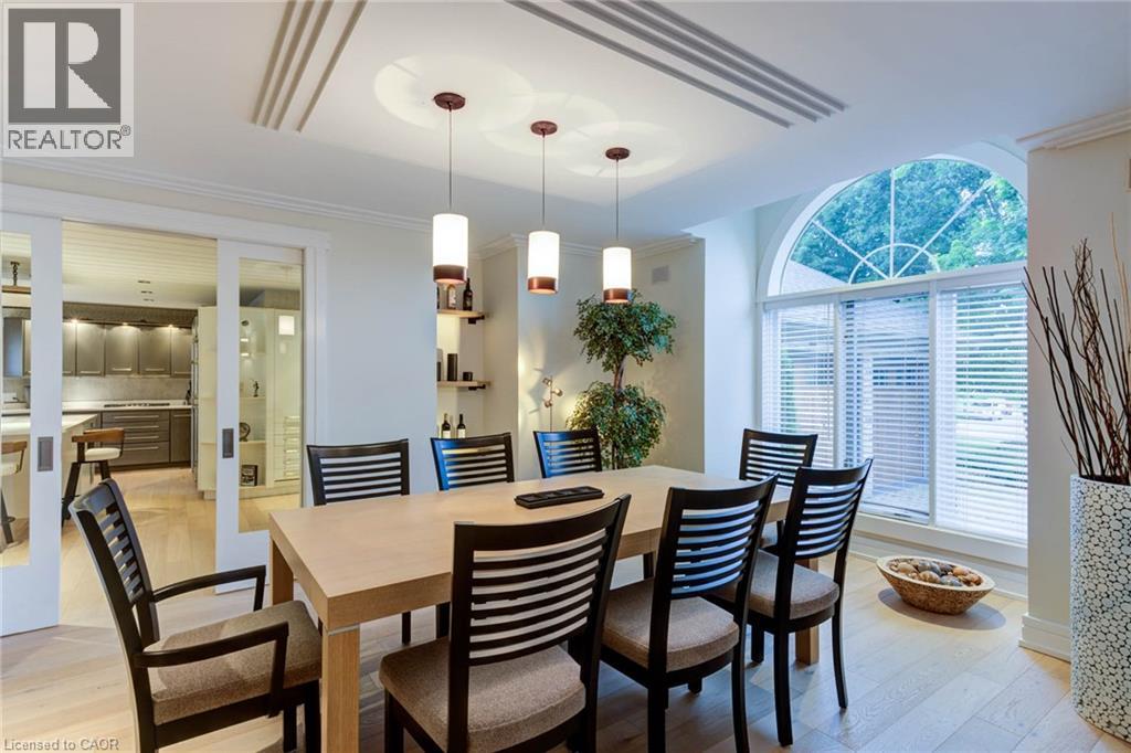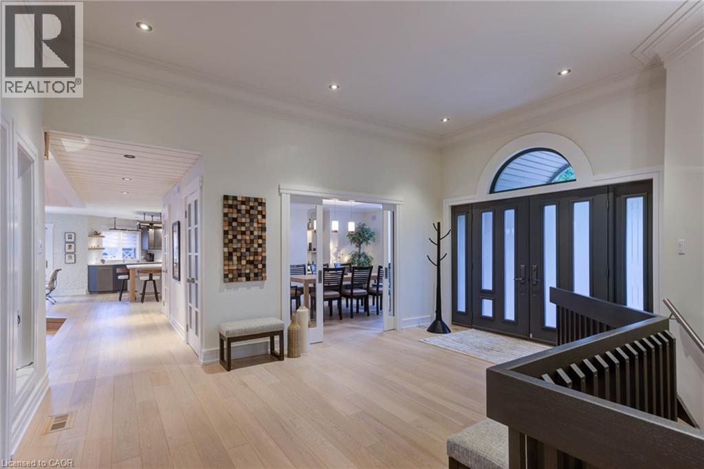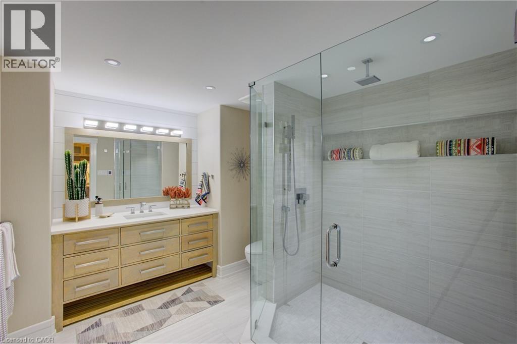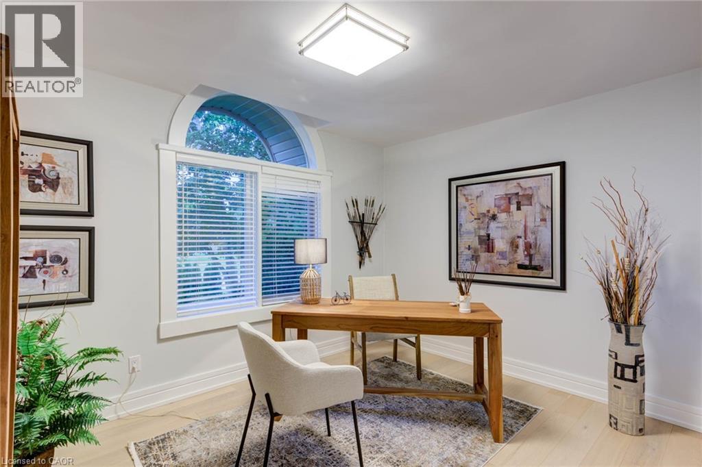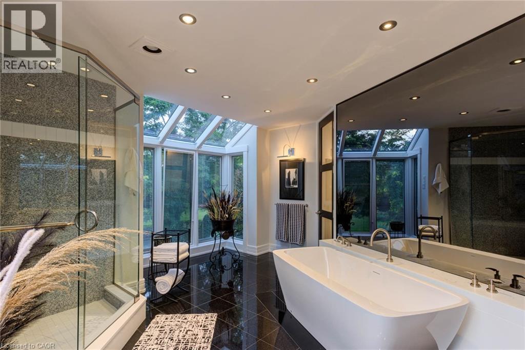 Luxurious Multi-Generational Living in Heidelberg. This custom-built bungalow blends West Coast Boho flair with rustic modern elegance, offering over 6,435 sq. ft. of extraordinary living space. Tucked away on a desirable private street just minutes from St. Jacobs Farmers’ Market and North Waterloo, this expansive home is designed for both lifestyle and comfort. The oversized double-car garage provides direct access to a fully finished in-law suite—ideal for multi-generational living or hosting guests. A grand foyer opens to an airy layout with a formal dining area and a sunken great room featuring vaulted ceilings, custom beams, and a wood-burning fireplace, all overlooking the chef-inspired kitchen with a spacious island. A tucked-away laundry room and powder room add convenience. The main level offers three bedrooms/home office options, including a primary retreat with its own fireplace and a stunning atrium-inspired ensuite filled with natural light. Three full bathrooms complete this floor. The walkout lower level has been newly updated with lighter paint, a wet bar, desk area, and modern finishes, enhancing its potential as a private suite. It includes an additional bedroom, full bathroom, and versatile living space. Outdoors, the beautifully landscaped yard is a true sanctuary with rock gardens, perennials, fire pit, waterfall, gazebo, and hot tub. With three separate patios, a shed with gas hookup, and a yard with pool potential, the possibilities for entertaining and recreation are endless. Gas lines for a BBQ or heater are already in place. A home of unparalleled character and function—this one is a must-see. Book your private showing today! (id:4069)