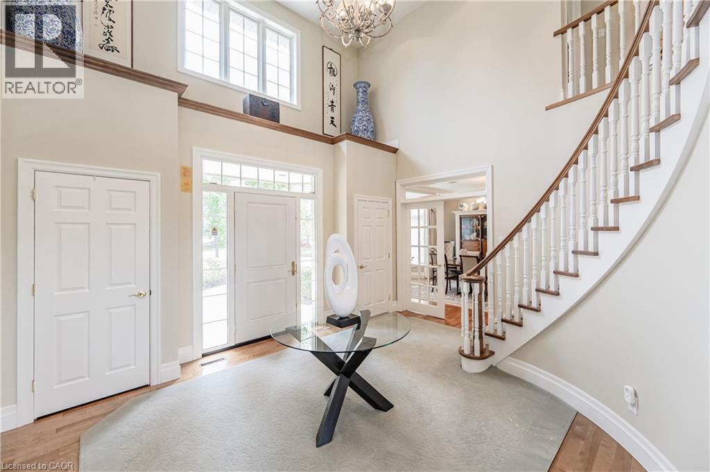Discover refined living in the prestigious River Oak Estates—where timeless design meets an extraordinary natural backdrop. Set on a lush half-acre lot backing directly onto the Grand River, this 6,000+ sq. ft. residence captures breathtaking views of the water, pond, and Grand River Trail. Thoughtful landscaping enhances its privacy and curb appeal, creating a truly peaceful setting. Inside, sophistication unfolds across three levels, with 5+2 bedrooms and 6 bathrooms offering comfort and flexibility for family and guests. The grand foyer opens to an elegant staircase and sun-filled formal living and dining rooms—ideal for entertaining large gatherings. The kitchen, complete with an oversized island and casual dining space, extends to a spacious deck overlooking the river. A stone wood-burning fireplace anchors the family room, where floor-to-ceiling windows frame the scenic outdoors. The main floor suite is a private retreat featuring a gas fireplace, walk-in closet, and balcony access. Its luxurious ensuite includes dual vanities, a soaker tub surrounded by windows, and a glass walk-in shower. Upstairs, you’ll find four additional bedrooms, a home office with custom built-ins, and a dedicated media room. The lower level offers two more bedrooms, a 3-piece bath, wet bar, games area, and walkout access to a stone patio and landscaped gardens—perfect for indoor-outdoor living. Blending comfort, elegance, and a rare connection to nature, this River Oak Estates home delivers a lifestyle as remarkable as its setting. (id:4069)