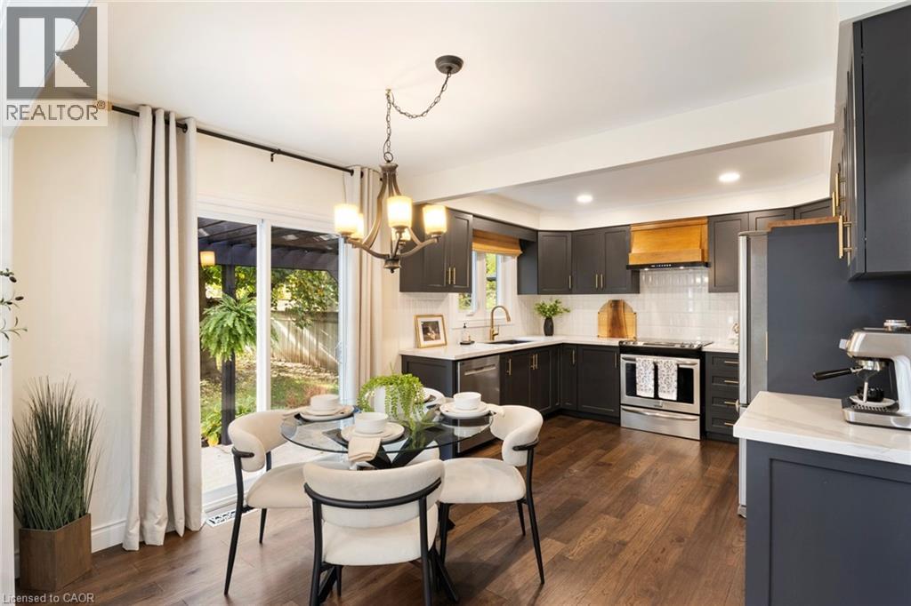Welcome to this beautifully updated 3-bedroom, 4-bathroom home tucked into one of Waterloo’s most family-friendly neighbourhoods. Inside, you’re greeted by a bright and airy sunken living room with cathedral ceilings, perfect for relaxing or hosting friends. The formal dining room is great for family dinners, and the custom-renovated kitchen (2024) is a true showpiece—with quartz countertops, high-end appliances, and beautiful cabinetry that combine style and function. The family room is cozy yet modern, featuring built-in shelving, a gas fireplace, and an integrated sound system—a perfect spot for movie nights or quiet evenings in. Upstairs, a loft/office offers a flexible space for working or studying from home. The primary bedroom feels like a retreat, complete with a spa-like ensuite (2025). Two additional bedrooms and a refreshed family bathroom (2021) complete the upper level. The finished basement adds even more living space, featuring a built-in bar, 3-piece bathroom, cold cellar, and plenty of room for enjoyment. Step outside to your fully fenced backyard—ideal for summer evenings or weekend gatherings. The double car garage and recent exterior updates (2023) including new siding, eaves, front and garage doors, add curb appeal and convenience. You’re never far from anything here—University Downs Plaza is just around the corner, and Conestoga Mall is only a short drive away for shopping and dining, and nearby parks offering sports fields, trails, playgrounds, and a dog park for outdoor fun. Families will appreciate being close to some of the region’s best schools. With aluminum-clad windows (2014), roof (2016), furnace (2009), A/C (2018), and so many thoughtful updates, this home is move-in ready and made for family living. Everything you need—schools, parks, shops, and community amenities—is just minutes from your doorstep in this welcoming neighbourhood. (id:4069)