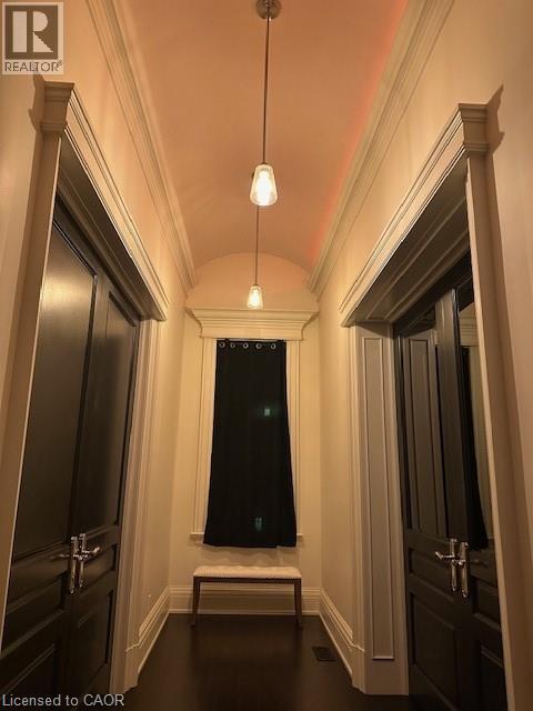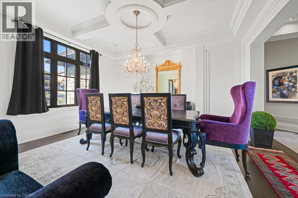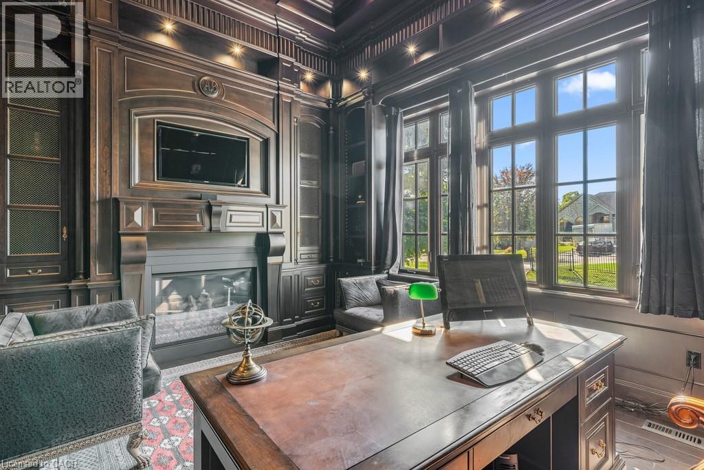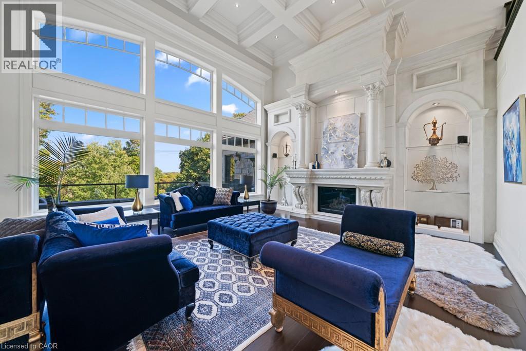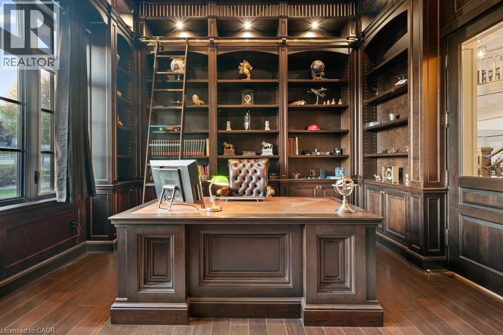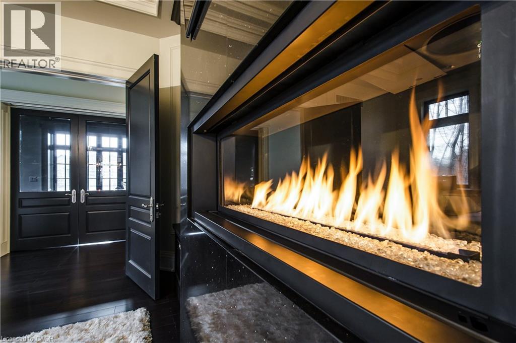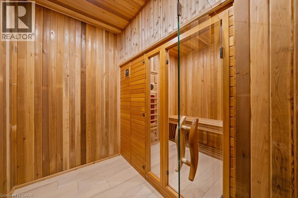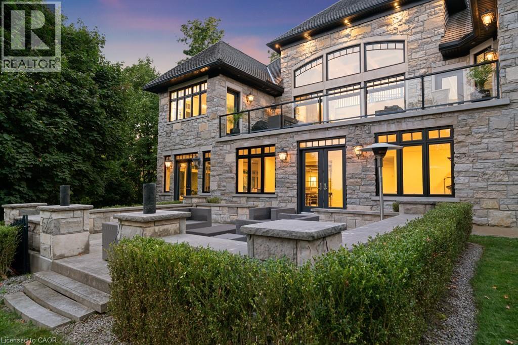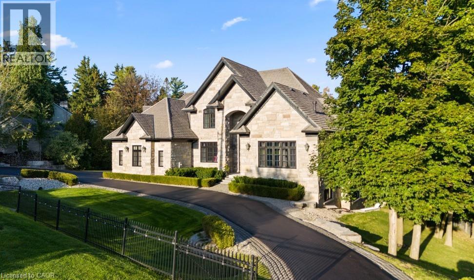 A Masterpiece of Craftsmanship and Permanence! Nestled beside a protected natural landscape with scenic year-round views of the Grand River, 546 Woolwich Place offers artistry, luxury, and privacy. With direct private access to the Grand River Trail from its gated yard, this home stands as a true legacy estate. The exterior features hand-chiseled Indiana limestone, an Enviroshake hurricane-rated roof, and a custom 9' African Mahogany front door. Professionally designed lighting highlights the architecture, while mature landscaping—boxwoods, maples, and walnuts—thrives under a six-zone irrigation system. Two driveways add rare functionality. Inside, every detail reflects craftsmanship. Solid wood architraves, 9.25 baseboards, and solid wood doors with platinum hardware set the tone. Exotic Red Laurel and Cocobolo hardwood floors flow throughout, anchored by a grand maple staircase with wrought iron railings. Radiant floor heating provides year-round comfort. Elegant plaster crown mouldings, Swarovski Schonbek chandeliers, and natural gas fireplaces enhance the ambiance. The primary suite is a spa-like retreat with book-matched Carrara marble, steam shower with body jets, two-person tub with Rubinet Swarovski crystal fixtures, and a linear fireplace set in Turkish stone. The powder room shines with platinum-infused Italian tiles and Swarovski sconces. A custom cherrywood study, crafted by artisans who built for notable successful Canadians, features 13' coffered ceilings and a Texas Longhorn leather-inset desk. All cabinets throughout the kitchen, laundry, and primary bedroom are Downsview cabinets. Wellness amenities include a Western Red Cedar sauna with cold plunge. A heated 900 sq. ft. triple-car garage with insulated cedar doors, smart home monitoring, and a Viessmann boiler system complete this extraordinary home, where timeless craftsmanship meets modern luxury amid unobstructed river and waterfront views. (id:4069)