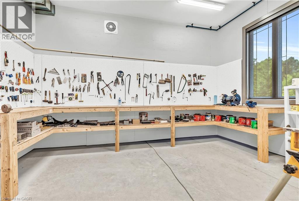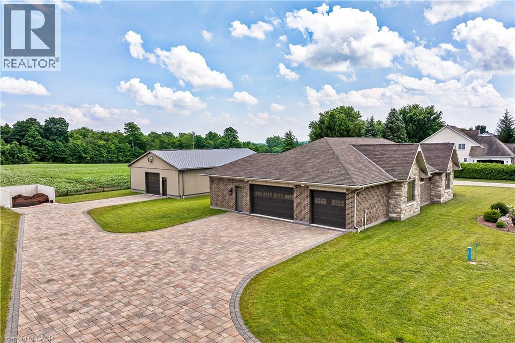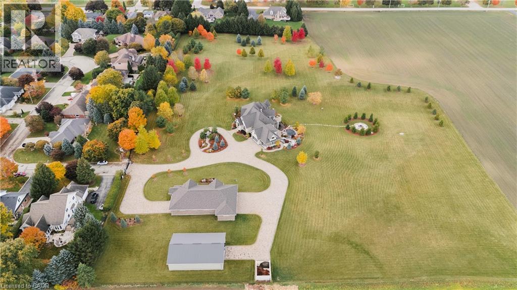 A rare offering in the prestigious countryside of St. Clements—46 Anita Drive is an 18.28-acre gated luxury estate that elevates refined country living. Beyond the custom iron gates, a 900 ft interlock drive leads to meticulously landscaped grounds revealing a showpiece 12ft granite Inukshuk roundabout. The $1M+ surrounding landscape/hardscape includes spectacular mature gardens and trees, a grand armour stone and granite waterfall cascading into a tranquil pond-crafted for privacy and prestige. Main residence exterior is a complementary blend of brick, stone and stucco spanning 7,325 sf on 3 levels. Radiant in-floor heating and Savant smart home automation throughout including garages. Vaulted ceilings, detailed poplar, oak and maple millwork and handcrafted finishes elevate every space. The home is filled with character and grandeur, featuring a double staircase leading from the upper deck down to the lower patio. At the heart of the home, a designer chef’s kitchen features Gaggenau appliances including range, teppanyaki, charcoal grill, 17 ft Cambria/Caesarstone quartz island, Cambria counters and backsplashes seamlessly flow into the sunlit family room that shares a 3-sided gas fireplace. The primary suite is a private retreat with a spa-like 9-piece ensuite, heated floors, surround sound, serene turret sitting area and boutique-style dressing room. The walk-out lower level is an entertainer’s dream-offering a custom bar, custom natural stone floor-to-ceiling gas fireplace, home theatre, gym & guest rooms. A 3,500 sf heated workshop/coach house with 11 ft ceilings and triple garage doors offers a workshop paradise or auxiliary residence conversion potential. In addition there is also a 2,468 sf steel storage building with custom steel pallet racking for 72 skids completes this extraordinary estate. Has potential for a unique equestrian setup. Fully irrigated around all three building perimeters, zoned A1 Agricultural, and min. to Waterloo and highway access. (id:4069)