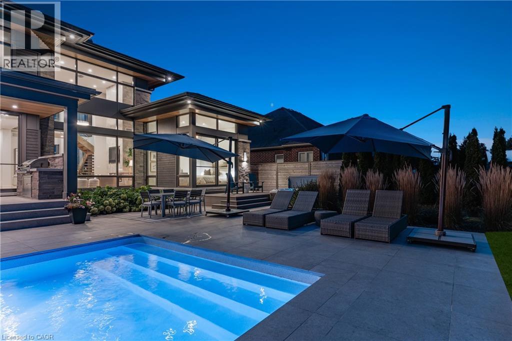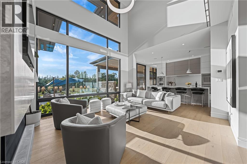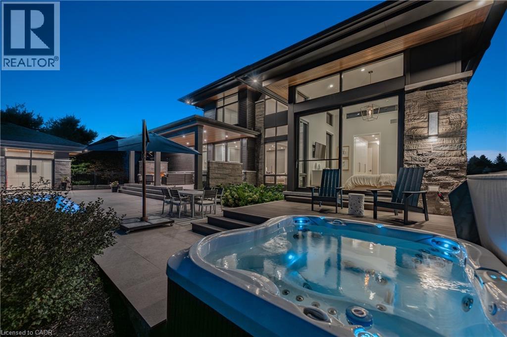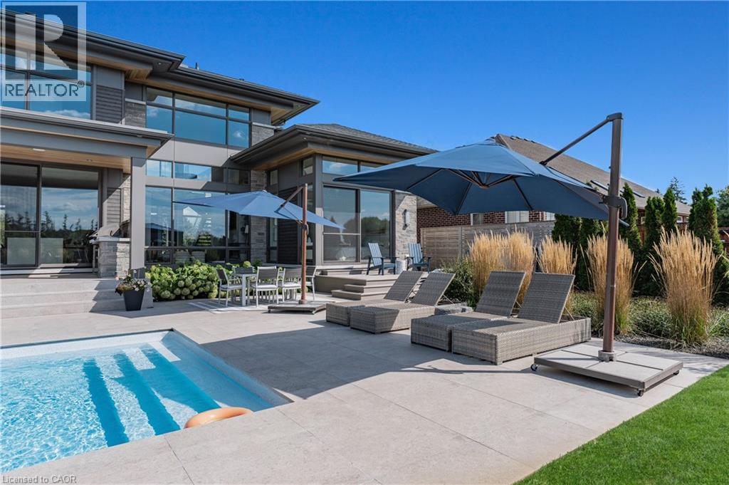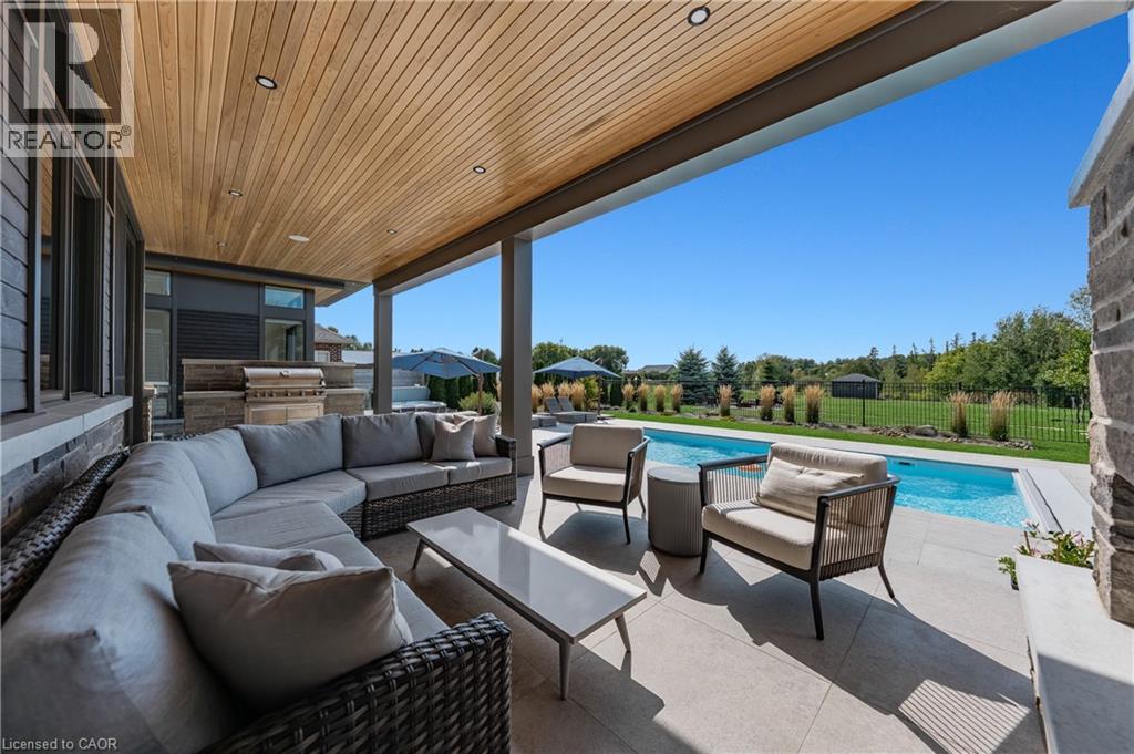 Welcome to 1826 Moser Young Rd in Wellesley, an incredibly rare offering that combines peaceful small-town living w/ uncompromising luxury just minutes to Waterloo & Kitchener. This 4,300+ SF, 4 bed, 6 bath architectural masterpiece, designed by David Small Designs & built by Slotegraaf Custom Homes, sits on a private 1+ AC lot backing onto greenspace. A home of this calibre, blending modern design, the finest finishes & true resort-style amenities, is seldom available. A dramatic 2-storey foyer w/ floating wood staircase & glass railings sets the tone. The great rm impresses w/ soaring ceilings, floor-to-ceiling windows & a porcelain-surround gas FP, framing spectacular views of the backyard oasis. The chef’s dream Thermador kitchen showcases a quartz waterfall island, W/I pantry & office nook, flowing seamlessly to the covered patio, outdoor kitchen & pool. The main-flr primary retreat is a private sanctuary w/ spa ensuite, dressing rm w/ wet/coffee bar & built-in laundry, plus direct access to the hot tub & yard. Upstairs, 2 bedrms each feature ensuites, W/I closets & 2nd laundry. The finished lower level is designed for entertaining, w/ a glass wine display wall, wet bar w/ beer tap & beverage fridges, media & games areas, wellness/fitness studio, plus guest bedrm & full bath-ideal for visitors or an in-law suite. Outdoors, western exposure captures sunsets across landscaped grounds. A heated saltwater pool is surrounded by imported Italian tile extending through the patio & covered porch. Completing this resort-like setting are a gas FP, outdoor kitchen, fire pit area, & cabana/flex studio w/ kitchenette & bath-perfect as a home office or guest suite. Additional highlights include a triple car garage incl. detached garage/workshop, 5-zone radiant in-flr heating, Control4 AV system & backup generator. Peaceful small-town living in Wellesley, minutes to the city, w/ resort-style living, architectural excellence & privacy, is truly a rare find-don’t miss out! (id:4069)