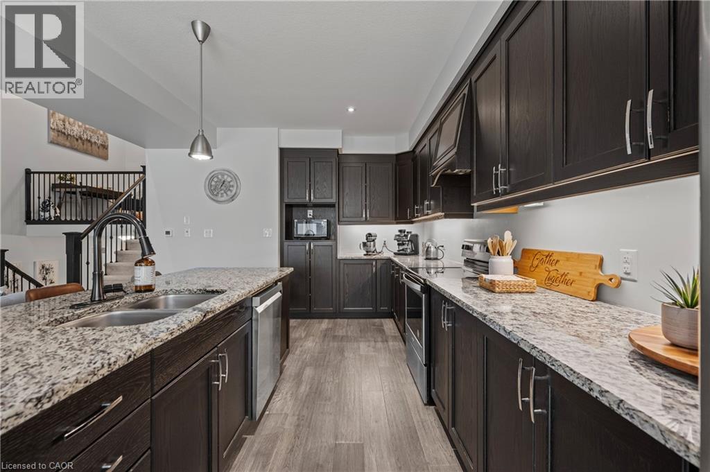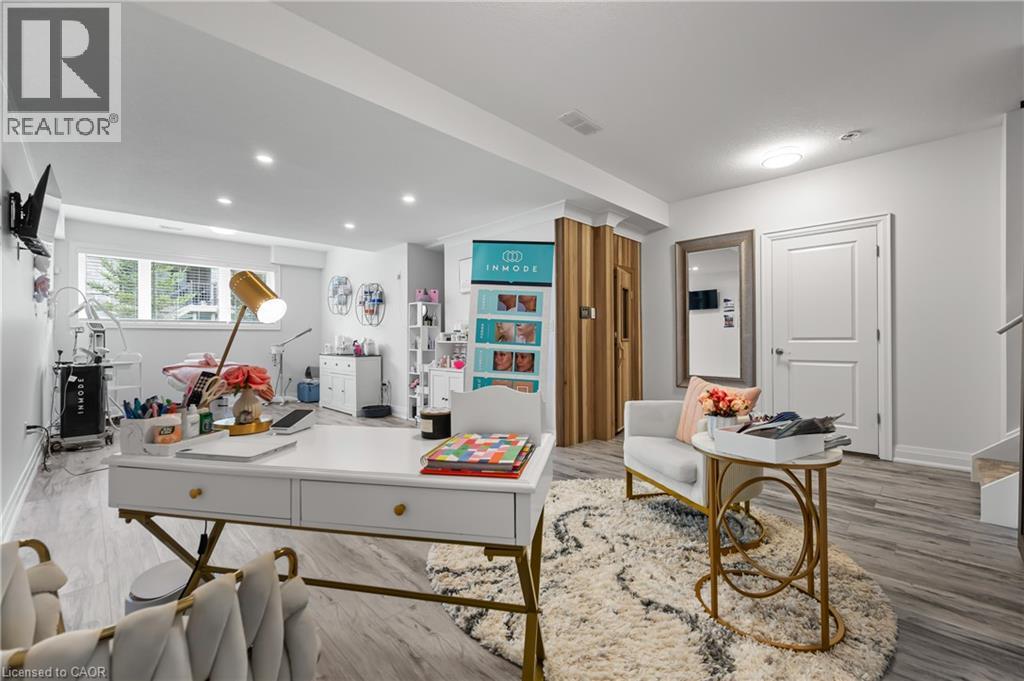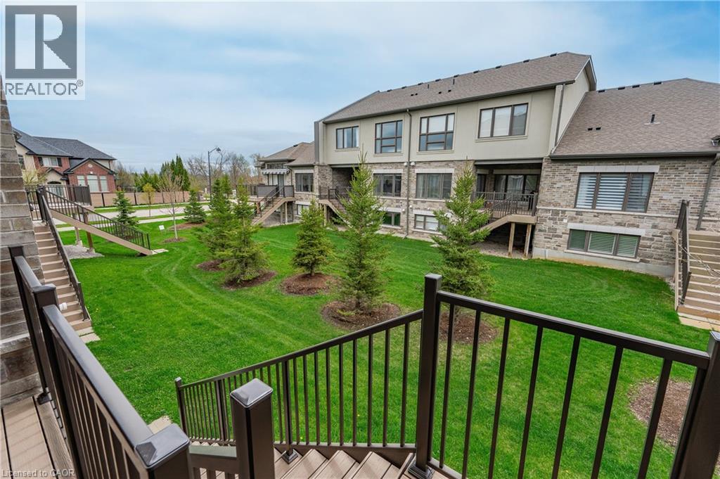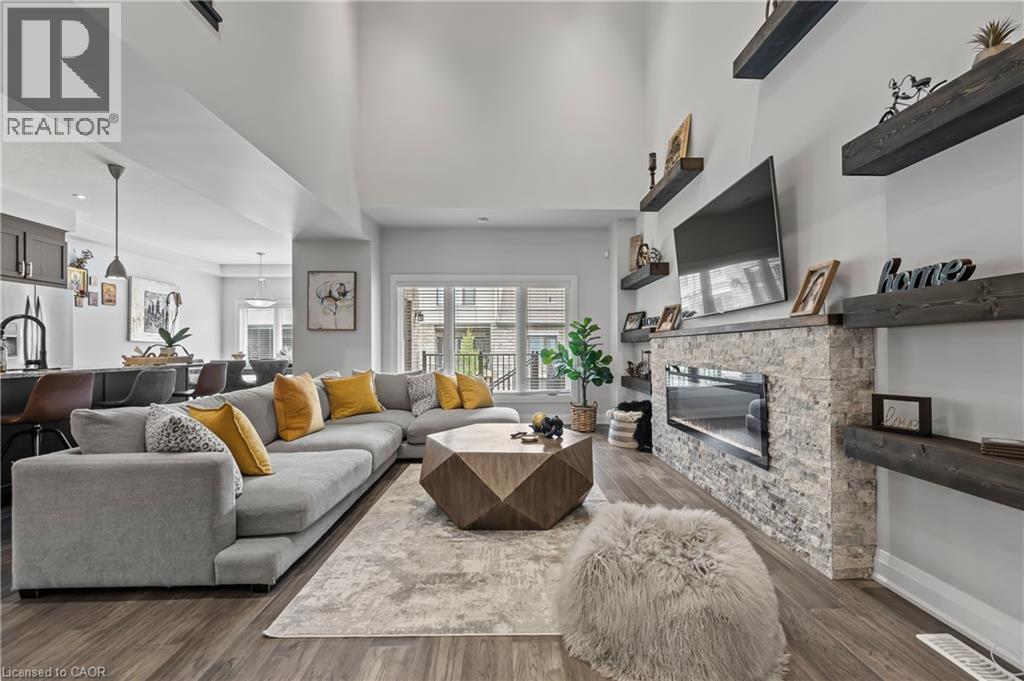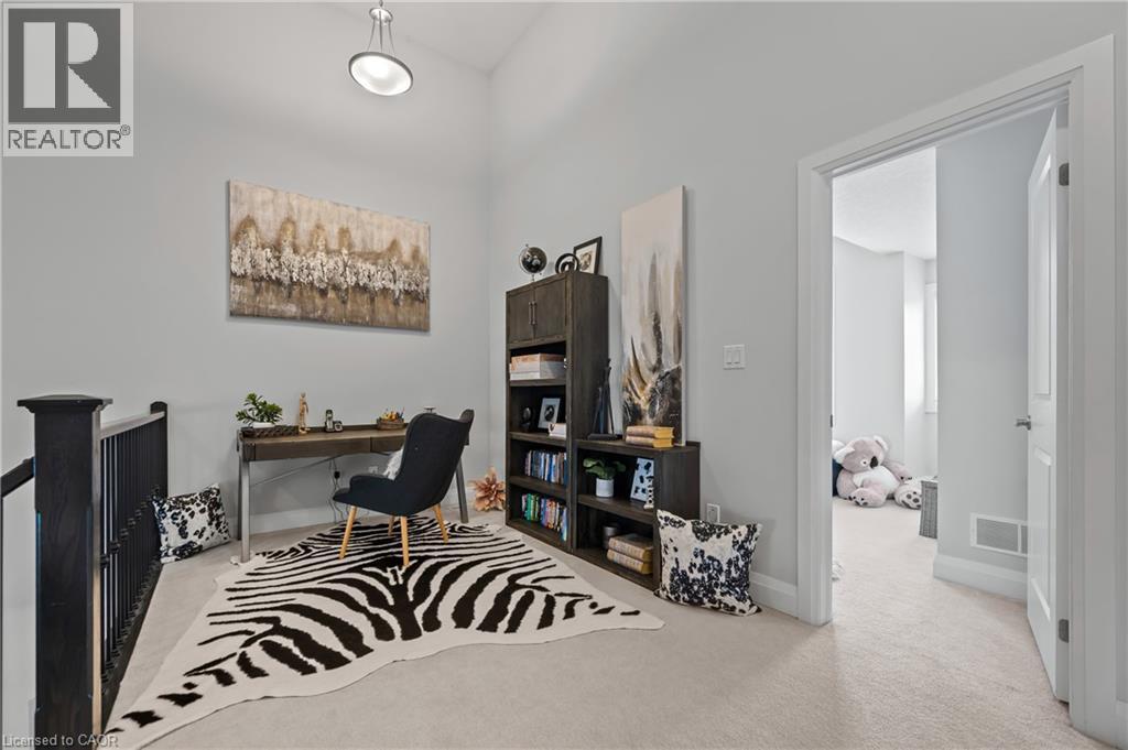 Welcome to this beautifully finished multi-level row townhouse nestled in the highly sought-after Grey Silo Gate community. Boasting over 3,100 sq. ft. of beautifully finished living space, this home offers both elegance and functionality. Its modern kitchen has built-in appliances with granite countertops, an extended breakfast island with seating, and ample cabinetry, perfect for culinary adventures and entertaining guests. There is a separate dining area with access to a covered composite porch with stairs leading down to the backyard. The open concept living room has soaring 16' ceilings and a cozy brick fireplace which serves as the focal point, creating a warm atmosphere. A spacious inviting foyer and modernized mudroom with main floor laundry access. There are three generous sized bedrooms, including a primary suite with a luxurious ensuite featuring double sink, freestanding soaker tub, walk-in glass shower with tile and a spacious walk-in closet. The additional second floor space offers versatility as a home office, reading nook, or play area. Finished basement offers lots of light with large above grade windows, open space for any recreational needs, along with a special featured built-in sauna, private office, and two additional storage spaces. Situated within walking distance to RIM Park’s Manulife Sportsplex and Healthy Living Centre, Grey Silo Golf Course, and the scenic Walter Bean Grand River Trail, outdoor enthusiasts and active families will appreciate the convenience and lifestyle this location has to offer. (id:4069)
