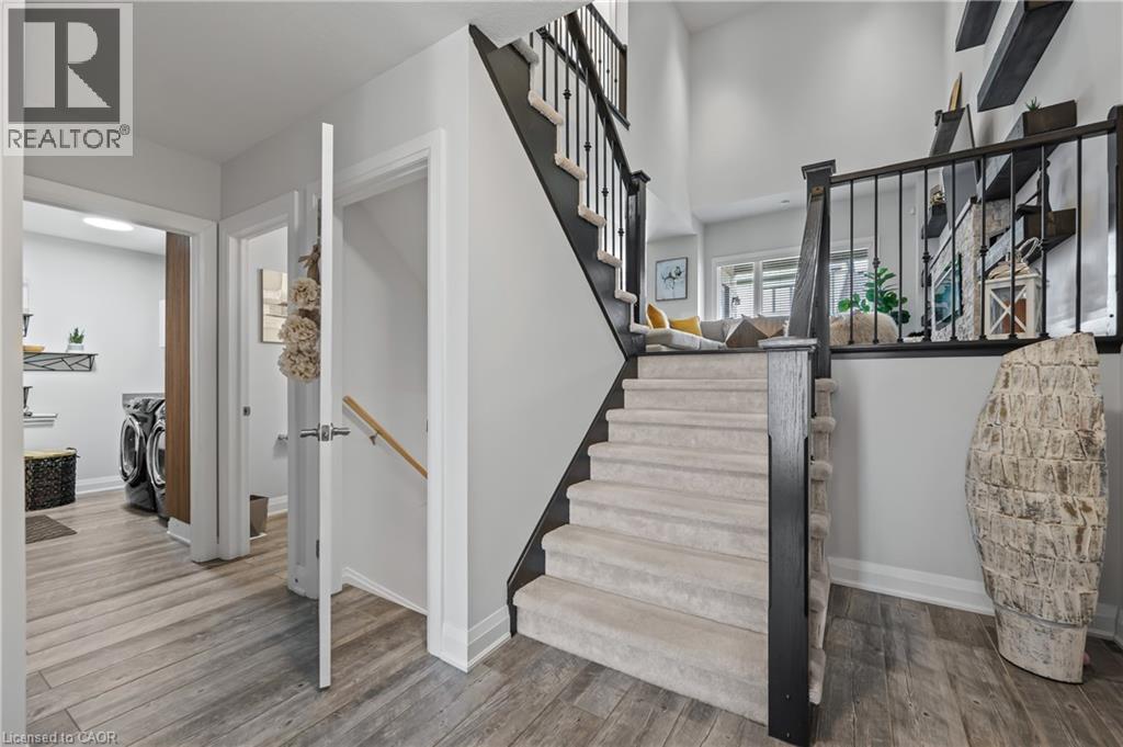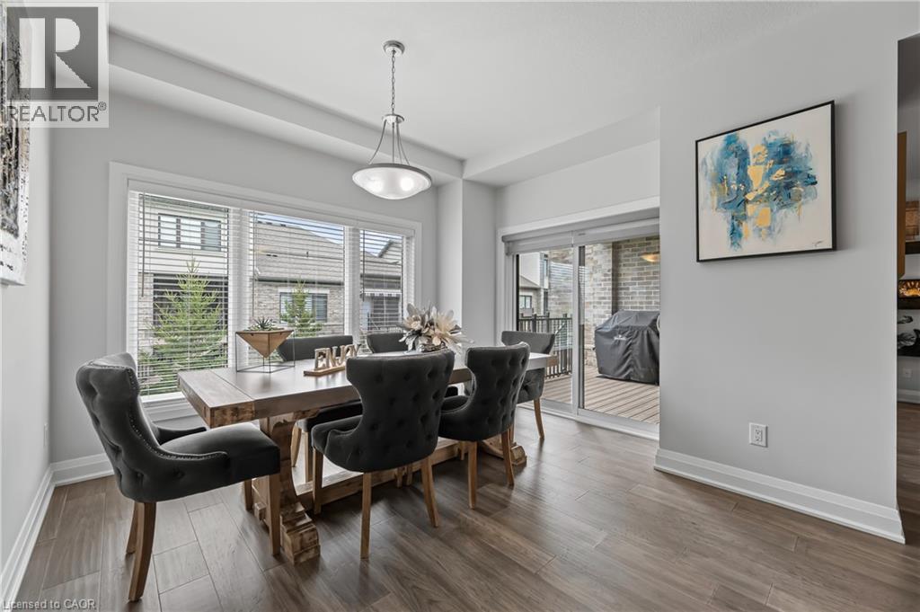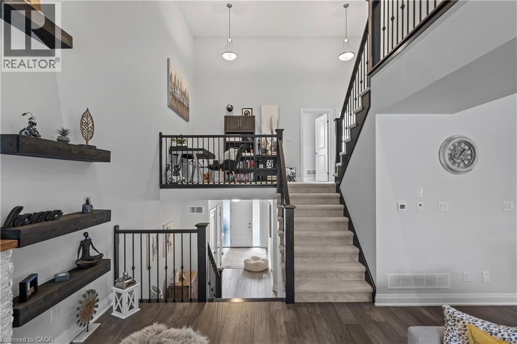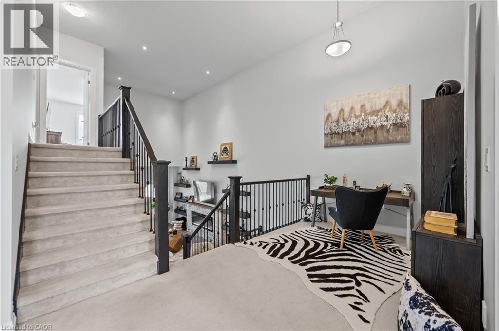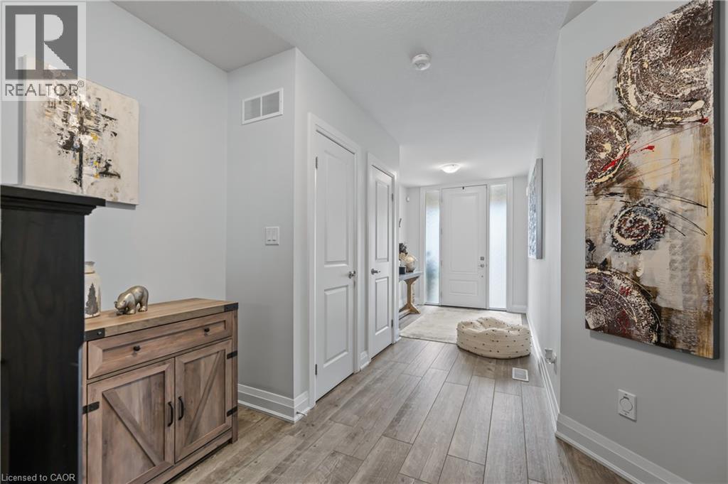 Welcome to this beautifully finished multi-level row townhouse nestled in the highly sought-after Grey Silo Gate community. Boasting over 3,100 sq. ft. of beautifully finished living space, this home offers both elegance and functionality. Its modern kitchen has built-in appliances with granite countertops, an extended breakfast island with seating, and ample cabinetry, perfect for culinary adventures and entertaining guests. There is a separate dining area with access to a covered composite porch with stairs leading down to the backyard. The open concept living room has soaring 16' ceilings and a cozy brick fireplace which serves as the focal point, creating a warm atmosphere. A spacious inviting foyer and modernized mudroom with main floor laundry access. There are three generous sized bedrooms, including a primary suite with a luxurious ensuite featuring double sink, freestanding soaker tub, walk-in glass shower with tile and a spacious walk-in closet. The additional second floor space offers versatility as a home office, reading nook, or play area. Finished basement offers lots of light with large above grade windows, open space for any recreational needs, along with a special featured built-in sauna, private office, and two additional storage spaces. Situated within walking distance to RIM Park’s Manulife Sportsplex and Healthy Living Centre, Grey Silo Golf Course, and the scenic Walter Bean Grand River Trail, outdoor enthusiasts and active families will appreciate the convenience and lifestyle this location has to offer. (id:4069)
