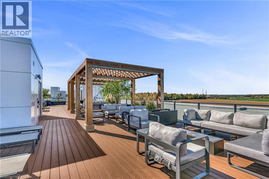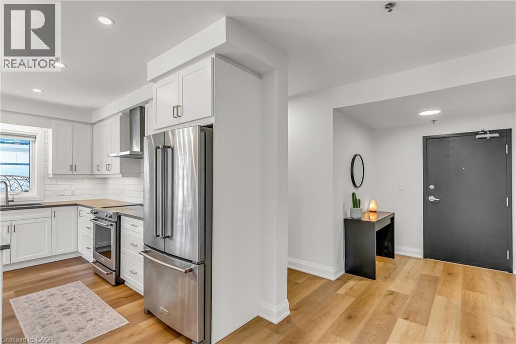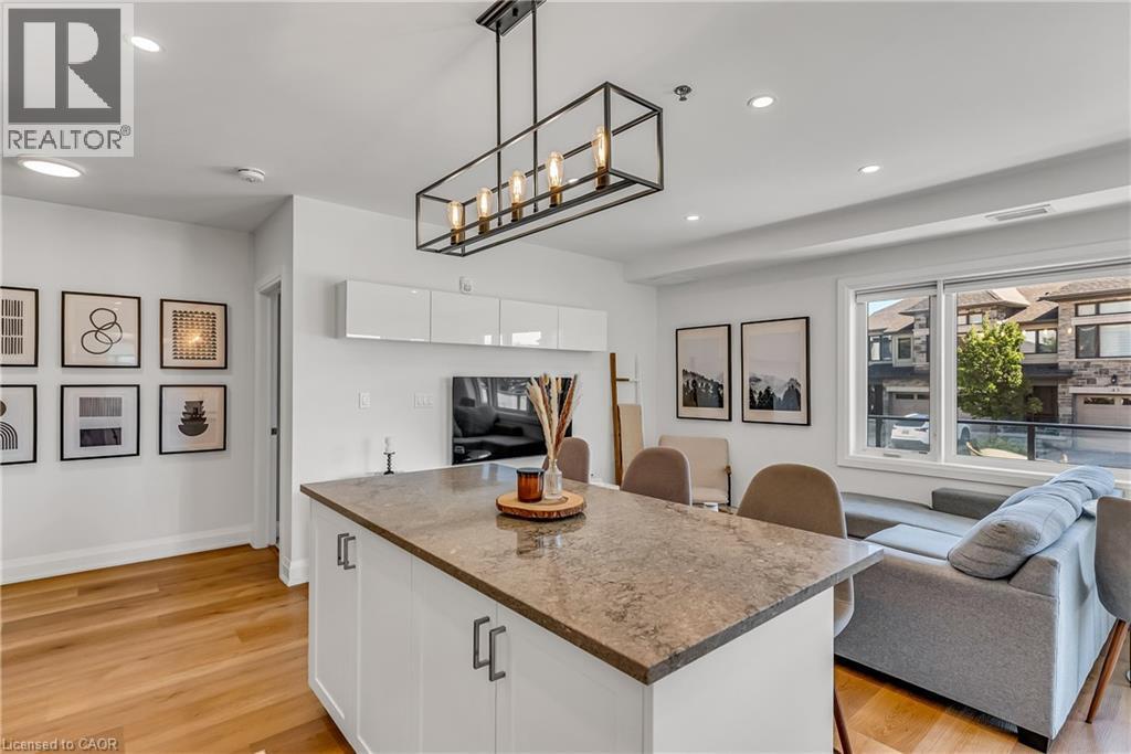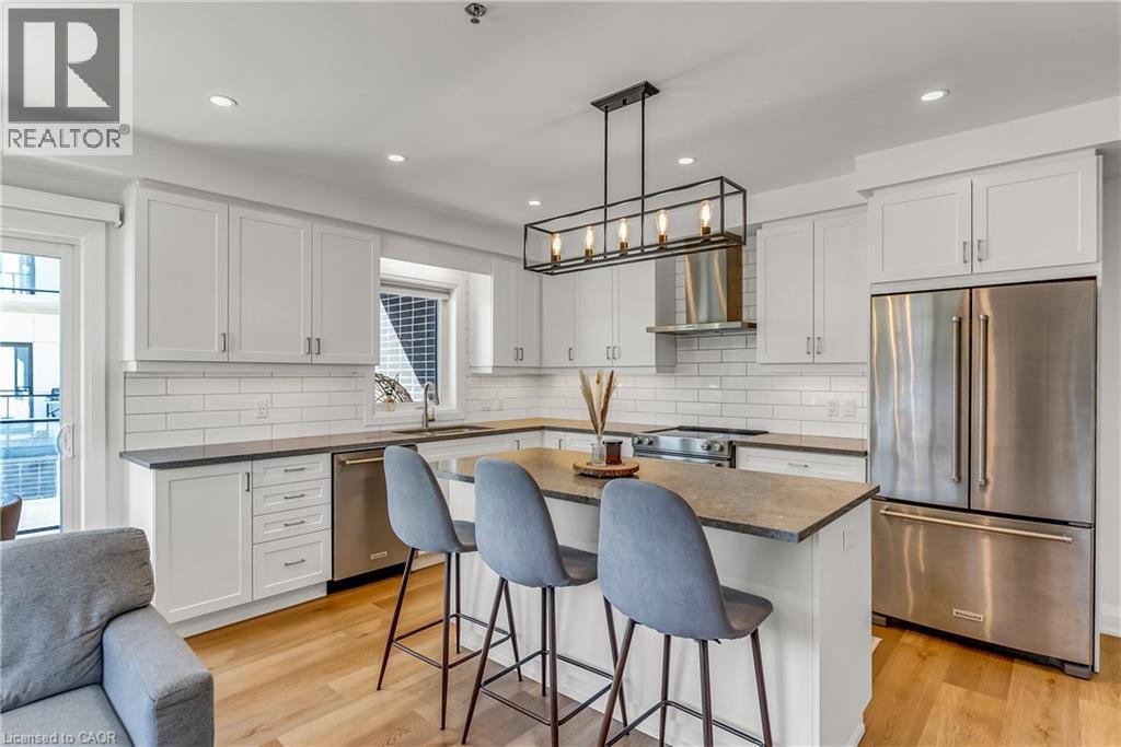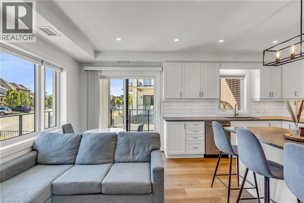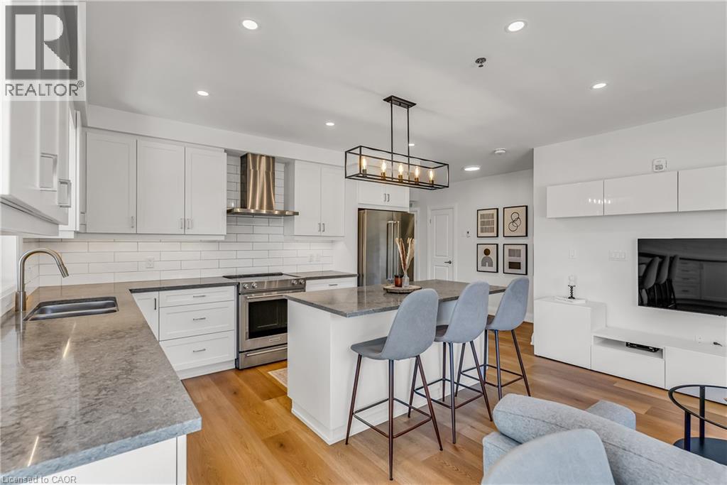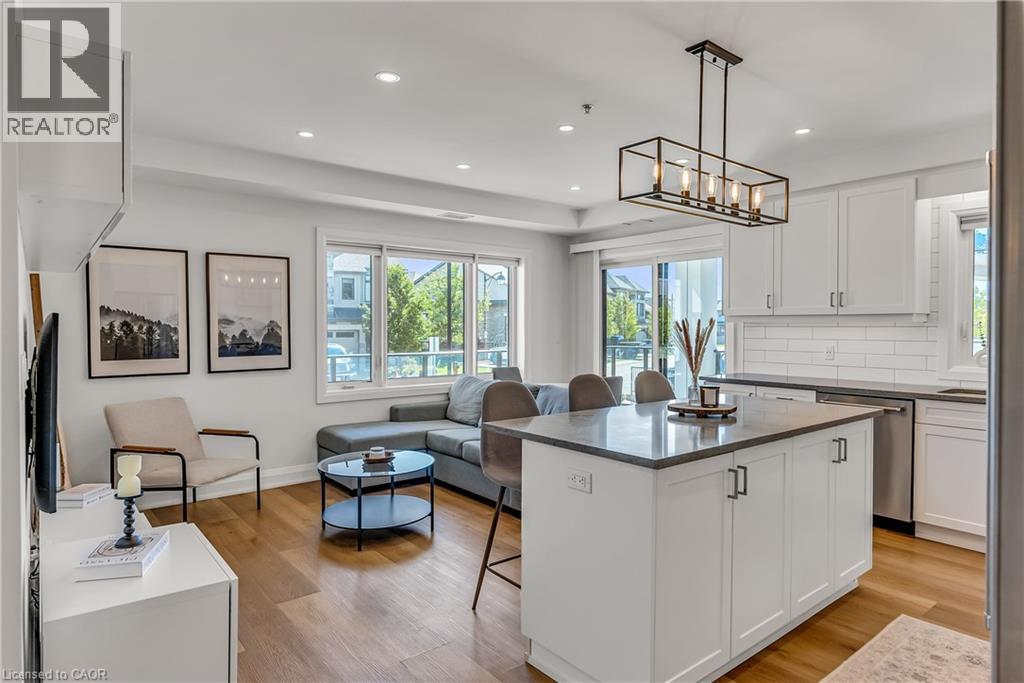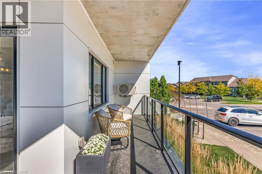 Experience upscale living in this spacious end unit executive condo, ideally situated in Waterloo’s sought after Carriage Crossing community. This beautifully designed home offers 2 bedrooms and 2 full bathrooms, including a primary suite with a double closet and private ensuite. With 2 dedicated parking spaces, this home combines style with convenience. The open concept kitchen is a true highlight, featuring a large island, quartz countertops, and stainless steel appliances, perfect for both cooking and entertaining. Just off the kitchen, step onto an enormous balcony with three distinct seating areas, an entertainer’s delight for gatherings or quiet evenings outdoors. Additional upgrades include modern bathrooms with quartz vanities and comfort-height toilets, an in-suite washer and dryer, a high efficiency water heater, water softener, and an HRV system for fresh air circulation year-round. Just steps from Grey Silo Golf Course, scenic walking trails, RIM Park Community Centre, and the RIM Technology Park, it offers the perfect balance of luxury and lifestyle. (id:4069)