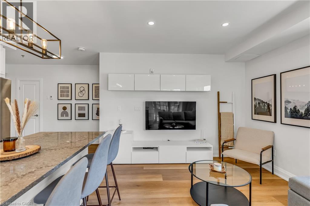 Experience upscale living in this spacious end unit executive condo, ideally situated in Waterloo’s sought after Carriage Crossing community. This beautifully designed home offers 2 bedrooms and 2 full bathrooms, including a primary suite with a double closet and private ensuite. With 2 dedicated outdoor parking spaces, this home combines style with convenience. The open concept kitchen is a true highlight, featuring a large island, quartz countertops, and stainless steel appliances, perfect for both cooking and entertaining. Just off the kitchen, step onto an enormous balcony with three distinct seating areas, an entertainer’s delight for gatherings or quiet evenings outdoors. Additional upgrades include modern bathrooms with quartz vanities and comfort-height toilets, an in-suite washer and dryer, a high efficiency water heater, water softener, and an HRV system for fresh air circulation year-round. Just steps from Grey Silo Golf Course, scenic walking trails, RIM Park Community Centre, and the RIM Technology Park, it offers the perfect balance of luxury and lifestyle. (id:4069)