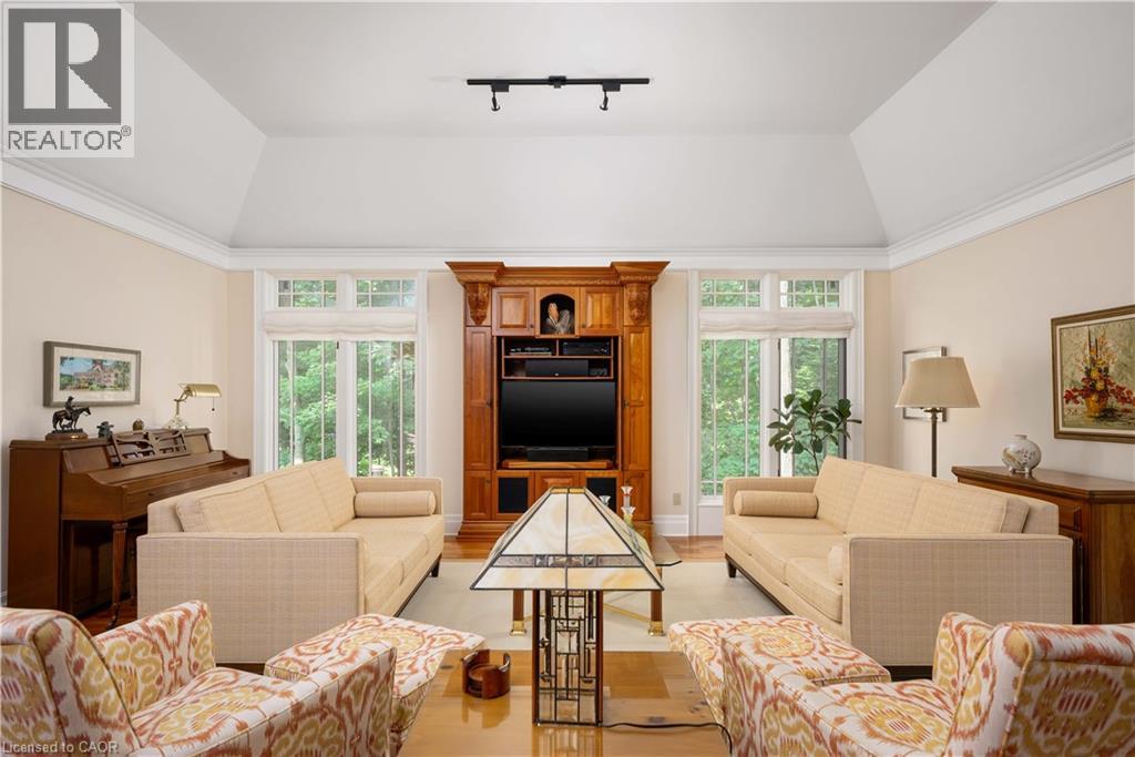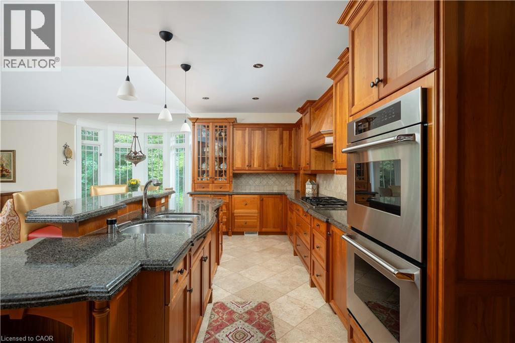 Welcome to 276 Carrington Place, truly your city home surrounded by nature. This prestigious Beechwood bungalow is perfectly located on a quiet court backing onto greenspace and trails. The home features 3 bedrooms and 5 bathrooms, set on a large, .90 acre private lot. Step into the grand foyer that opens into the spacious living room with soaring ceilings and a double-sided fireplace which can be enjoyed from the formal living room as well as the formal dining room. The large kitchen comes fully equipped with sub Zero Fridge and Freezer as well as all the top end built in appliances. With ample counter space, and plenty of storage, the kitchen is an absolute stunner! The Kitchen opens onto the family room which gives access to the indoor outdoor covered and phantom screened porch. All to enjoy your beautiful private yard. Down the open concept hallway it will lead you to the expansive primary suite, which features a large dressing area with two walk-in closets and luxurious en suite bathroom. The fully finished basement with 10 ft ceilings offers an impressive amount of additional living space, complete with a games room, bar, family room, and an extra bedroom with its own bathroom - perfect for entertaining or extended family. Outdoors, the backyard is the true highlight with a large patio area on expansive greenspace, along with your own private pathways around the gardens and trails. This exceptional property combines privacy, functionality, and a one-of-a-kind setting in sought-after Beechwood. Homes like this rarely come on the market. (id:4069)