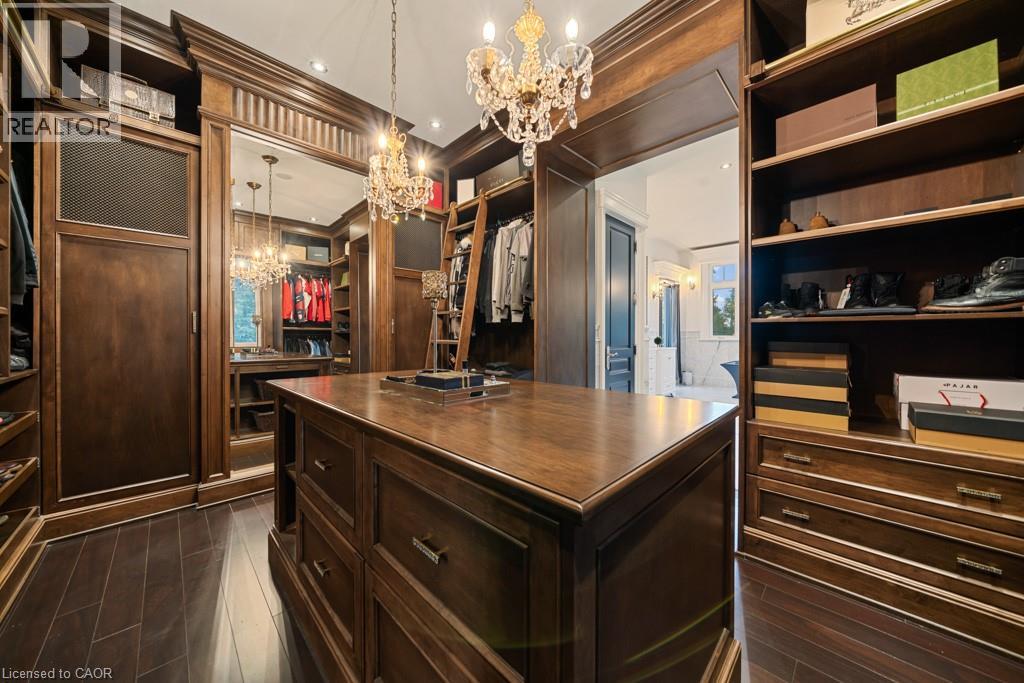 A Masterpiece of Craftsmanship and Permanence! Nestled beside a protected natural landscape with scenic year-round views of the Grand River, 546 Woolwich Place offers artistry, luxury, and privacy. With direct private access to the Grand River Trail from its gated yard, this home stands as a true legacy estate. The exterior features hand-chiseled Indiana limestone, an Enviroshake hurricane-rated roof, and a custom 9' African Mahogany front door. Professionally designed lighting highlights the architecture, while mature landscaping—boxwoods, maples, and walnuts—thrives under a six-zone irrigation system. Two driveways add rare functionality. Inside, every detail reflects craftsmanship. Solid wood architraves, 9.25 baseboards, and solid wood doors with platinum hardware set the tone. Exotic Red Laurel and Cocobolo hardwood floors flow throughout, anchored by a grand maple staircase with wrought iron railings. Radiant floor heating provides year-round comfort. Elegant plaster crown mouldings, Swarovski Schonbek chandeliers, and natural gas fireplaces enhance the ambiance. The primary suite is a spa-like retreat with book-matched Carrara marble, steam shower with body jets, two-person tub with Rubinet Swarovski crystal fixtures, and a linear fireplace set in Turkish stone. The powder room shines with platinum-infused Italian tiles and Swarovski sconces. A custom cherrywood study, crafted by artisans who built for notable successful Canadians, features 13' coffered ceilings and a Texas Longhorn leather-inset desk. All cabinets throughout the kitchen, laundry, and primary bedroom are Downsview cabinets. Wellness amenities include a Western Red Cedar sauna with cold plunge. A heated 900 sq. ft. triple-car garage with insulated cedar doors, smart home monitoring, and a Viessmann boiler system complete this extraordinary home, where timeless craftsmanship meets modern luxury amid unobstructed river and waterfront views. (id:4069)
