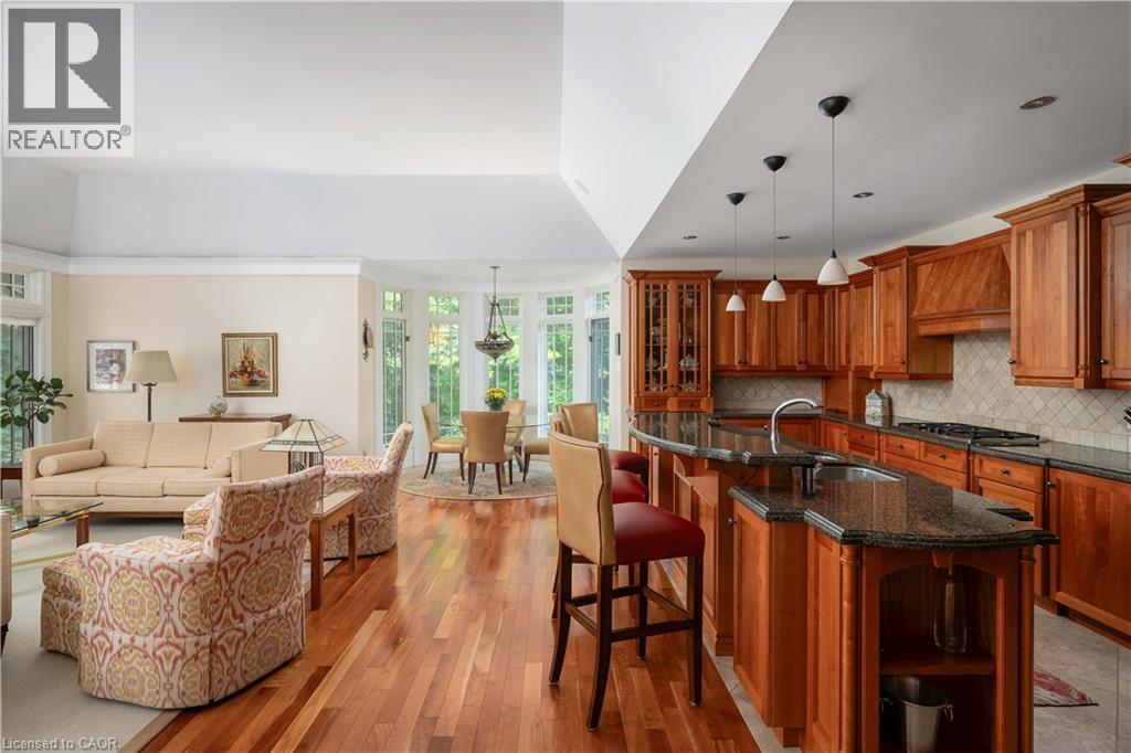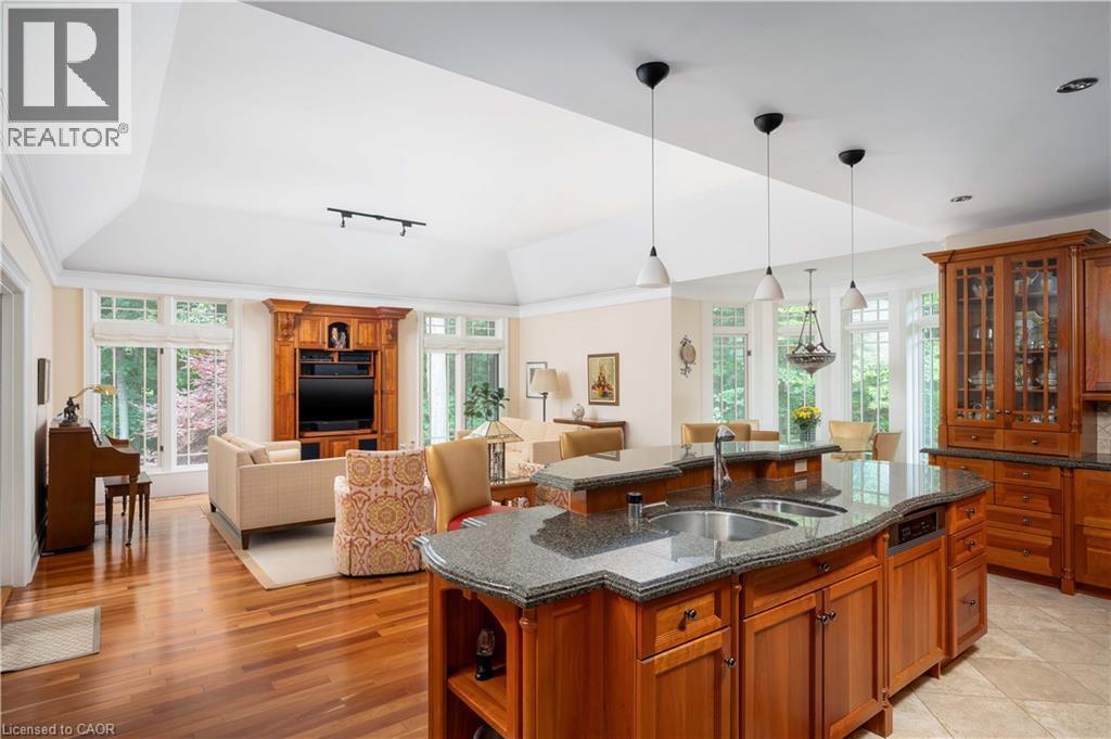 Welcome to 276 Carrington Place, truly your city home surrounded by nature. This prestigious Beechwood bungalow is perfectly located on a quiet court backing onto greenspace and trails. The home features 3 bedrooms and 5 bathrooms, set on a large, .90 acre private lot. Step into the grand foyer that opens into the spacious living room with soaring ceilings and a double-sided fireplace which can be enjoyed from the formal living room as well as the formal dining room. The large kitchen comes fully equipped with sub Zero Fridge and Freezer as well as all the top end built in appliances. With ample counter space, and plenty of storage, the kitchen is an absolute stunner! The Kitchen opens onto the family room which gives access to the indoor outdoor covered and phantom screened porch. All to enjoy your beautiful private yard. Down the open concept hallway it will lead you to the expansive primary suite, which features a large dressing area with two walk-in closets and luxurious en suite bathroom. The fully finished basement with 10 ft ceilings offers an impressive amount of additional living space, complete with a games room, bar, family room, and an extra bedroom with its own bathroom - perfect for entertaining or extended family. Outdoors, the backyard is the true highlight with a large patio area on expansive greenspace, along with your own private pathways around the gardens and trails. This exceptional property combines privacy, functionality, and a one-of-a-kind setting in sought-after Beechwood. Homes like this rarely come on the market. (id:4069)