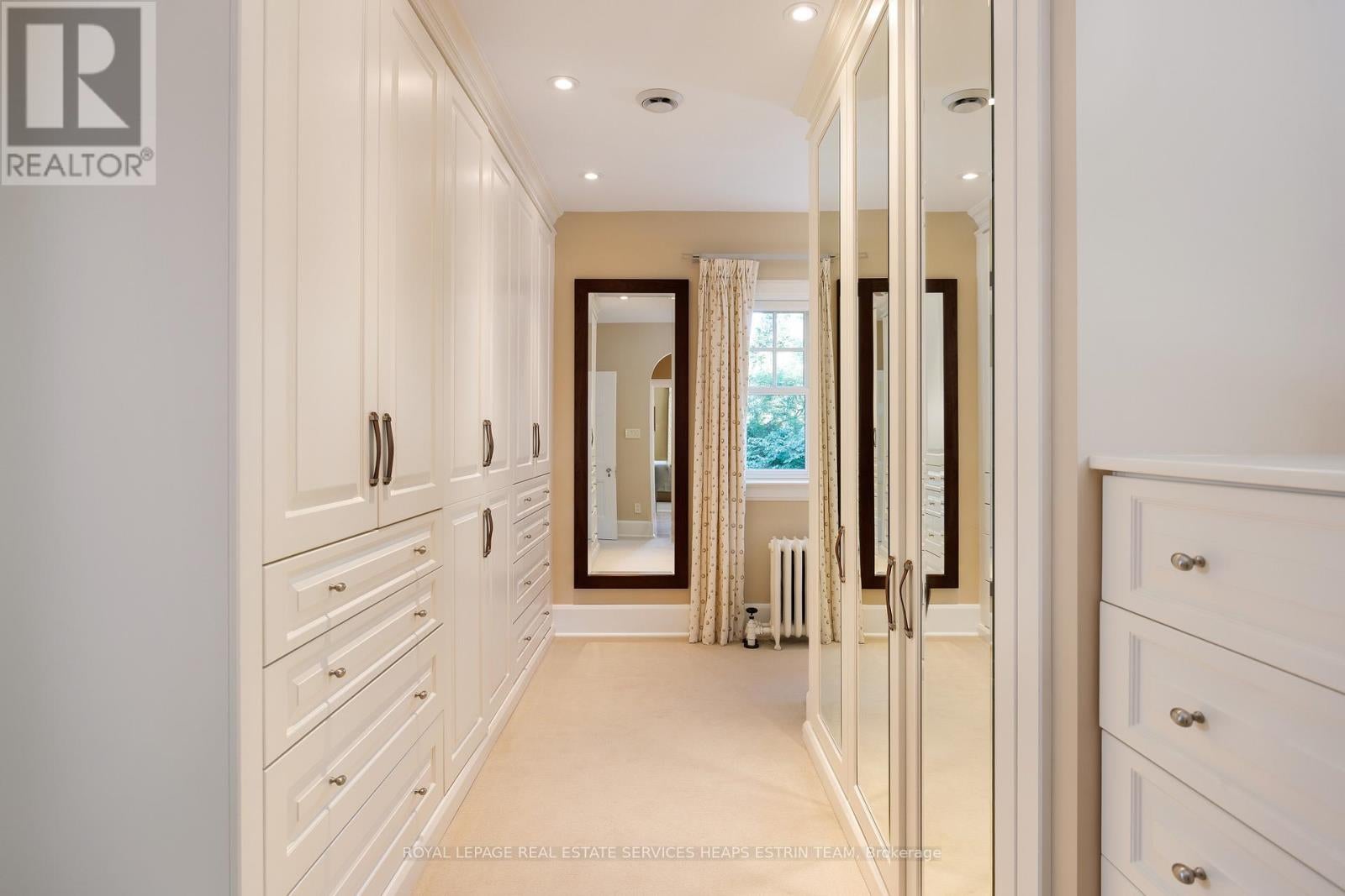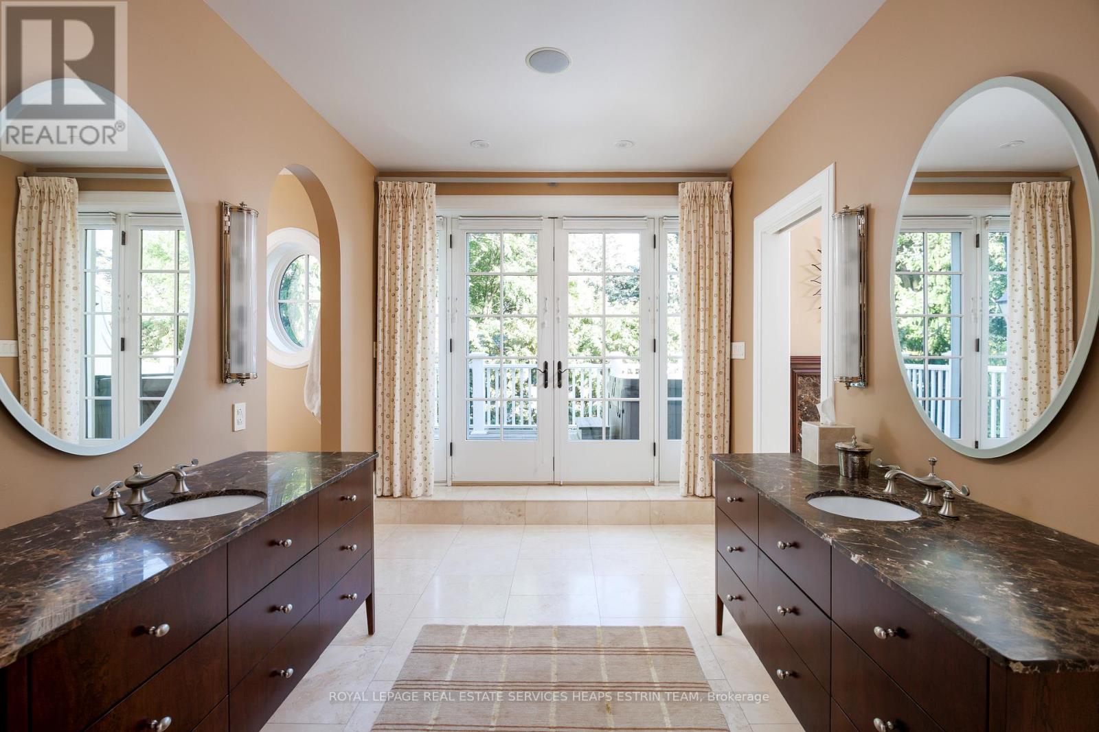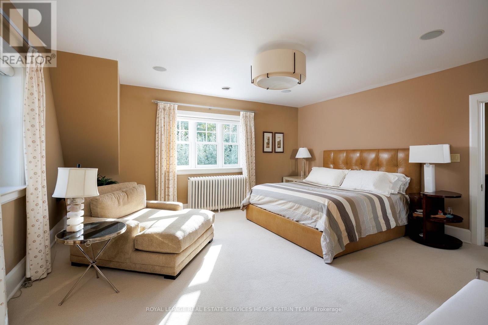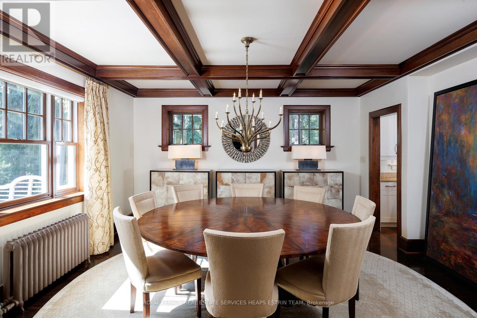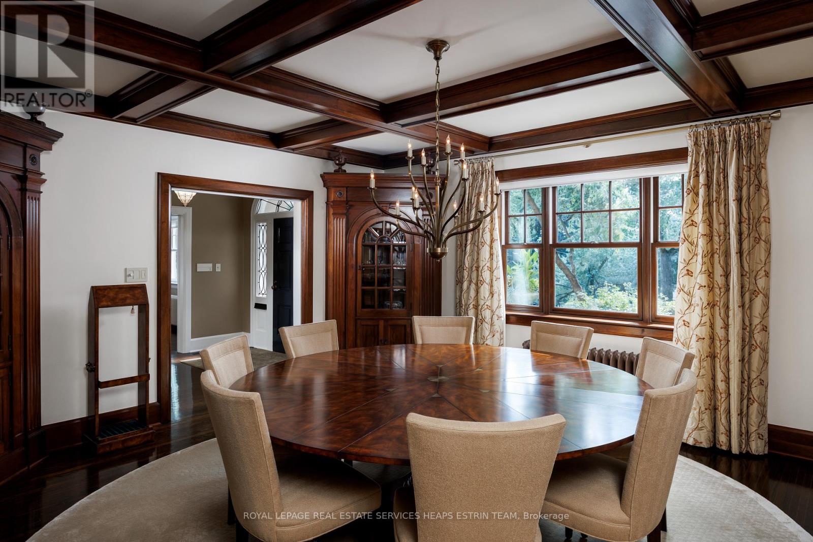 A landmark estate in St. George's Park. Privately set on one of Guelph's most prestigious streets, 75 Queen Street is a legacy residence of rare scale and architectural significance. This fully reimagined Dutch Colonial estate sits elevated on an 89 x 264-foot lot, surrounded by professionally designed grounds that have been meticulously cultivated and maintained for over 25 years. The exterior offers resort-quality living, with a saltwater pool, wood-burning fireplace, outdoor shower, and dedicated pool bathroom, framed by mature trees and layered stonework. The sense of privacy and serenity is immediate. Inside, the home spans over 5,700 square feet of finished space and follows a classic centre-hall plan with gracious flow and custom detail throughout. The main level includes a grand great room, formal dining room, glass-enclosed sunroom, chef's kitchen with granite surfaces and premium appliances, and a private office. Upstairs, the primary suite features two fireplaces, a walk-in closet, a five-piece ensuite, and a private balcony with hot tub. The third floor offers additional bedrooms, a large family room with wet bar, and elevated views of the gardens and city skyline. The fully finished lower level includes radiant heated floors, a home theatre, cigar lounge with ventilation, wine cellar, kitchenette, and full laundry. A detached garage and separate outbuilding provide parking for four vehicles, a sauna, a full bath, and two upper lofts that are ideal for guest accommodation, a studio, or a wellness retreat. In total, there is parking for 14 vehicles. All buildings are security-monitored and equipped with heat sensors, ensuring peace of mind and enhanced safety throughout the estate. Just steps to St. George's Park and within walking distance to downtown, the GO Station, and top schools, this property presents a rare opportunity to own one of Guelph's most iconic estates. Timeless, private, and built without compromise. (id:4069)