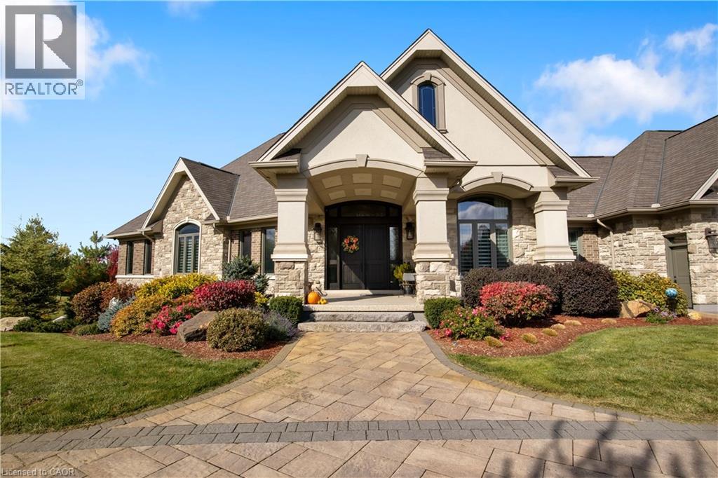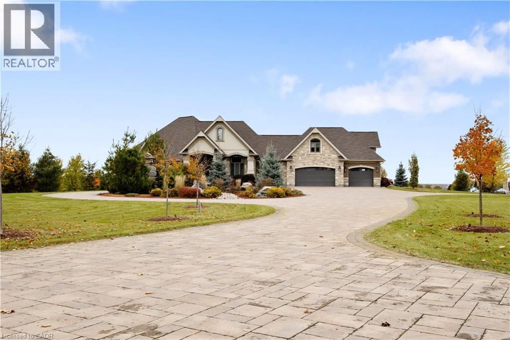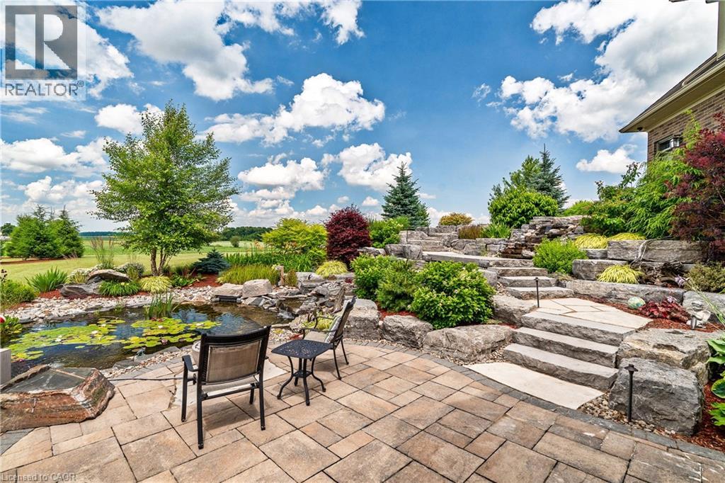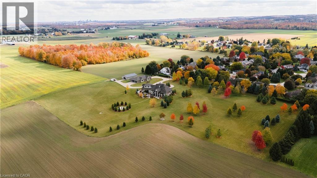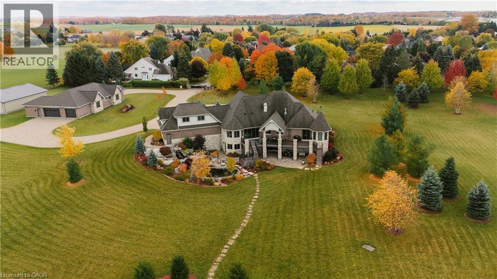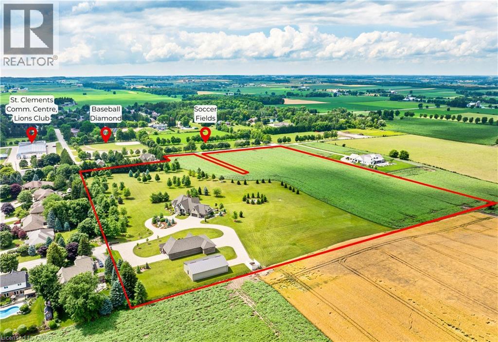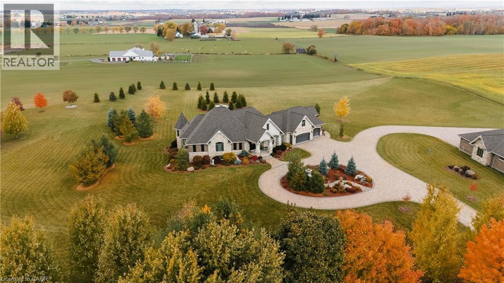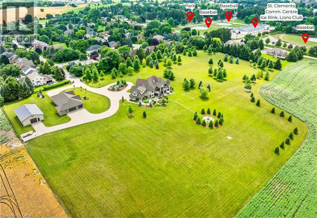 A rare offering in the prestigious countryside of St. Clements—46 Anita Drive is an 18.28-acre gated luxury estate that elevates refined country living. Beyond the custom iron gates, a 900 ft interlock drive leads to meticulously landscaped grounds revealing a showpiece 12ft granite Inukshuk roundabout. The $1M+ surrounding landscape/hardscape includes spectacular mature gardens and trees, a grand armour stone and granite waterfall cascading into a tranquil pond-crafted for privacy and prestige. Main residence exterior is a complementary blend of brick, stone and stucco spanning 7,325 sf on 3 levels. Radiant in-floor heating and Savant smart home automation throughout including garages. Vaulted ceilings, detailed poplar, oak and maple millwork and handcrafted finishes elevate every space. The home is filled with character and grandeur, featuring a double staircase leading from the upper deck down to the lower patio. At the heart of the home, a designer chef’s kitchen features Gaggenau appliances including range, teppanyaki, charcoal grill, 17 ft Cambria/Caesarstone quartz island, Cambria counters and backsplashes seamlessly flow into the sunlit family room that shares a 3-sided gas fireplace. The primary suite is a private retreat with a spa-like 9-piece ensuite, heated floors, surround sound, serene turret sitting area and boutique-style dressing room. The walk-out lower level is an entertainer’s dream-offering a custom bar, custom natural stone floor-to-ceiling gas fireplace, home theatre, gym & guest rooms. A 3,500 sf heated workshop/coach house with 11 ft ceilings and triple garage doors offers a workshop paradise or auxiliary residence conversion potential. In addition there is also a 2,468 sf steel storage building with custom steel pallet racking for 72 skids completes this extraordinary estate. Has potential for a unique equestrian setup. Fully irrigated around all three building perimeters, zoned A1 Agricultural, and min. to Waterloo and highway access. (id:4069)