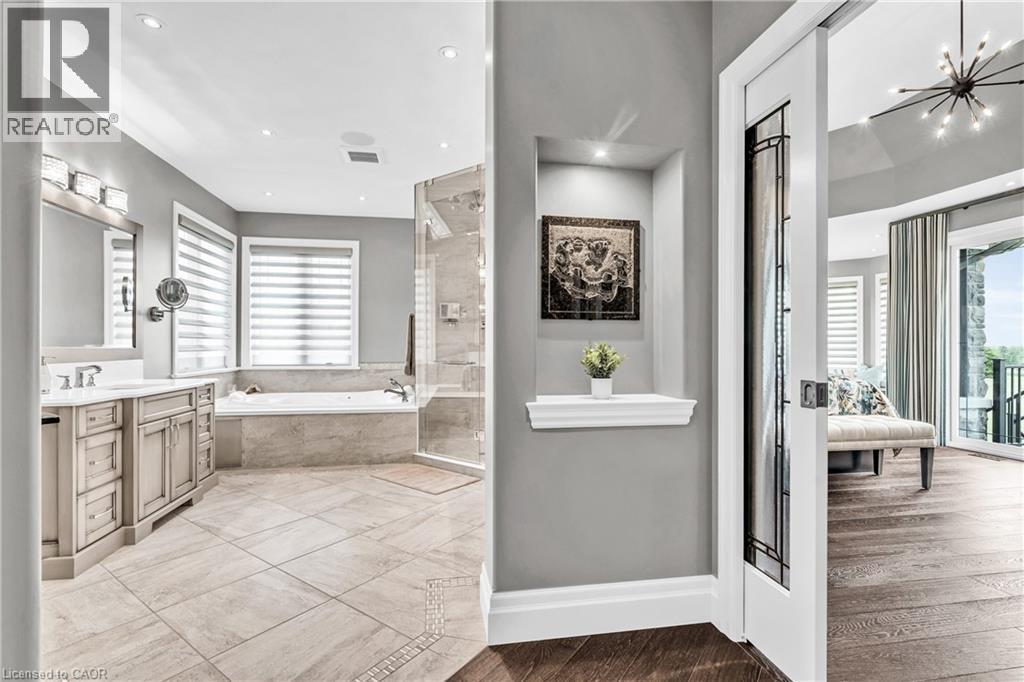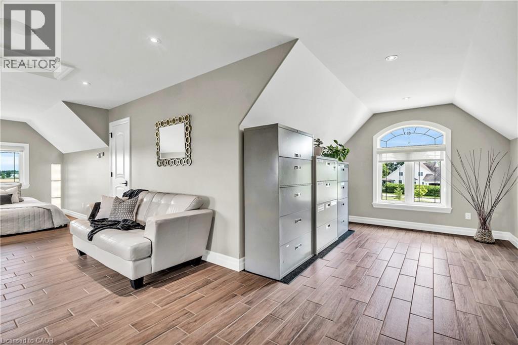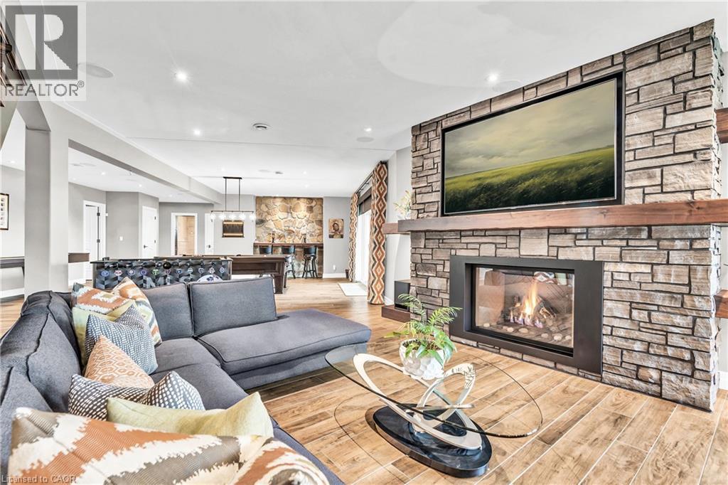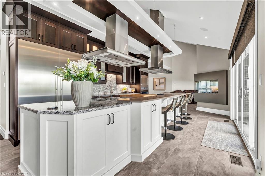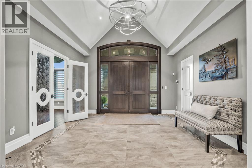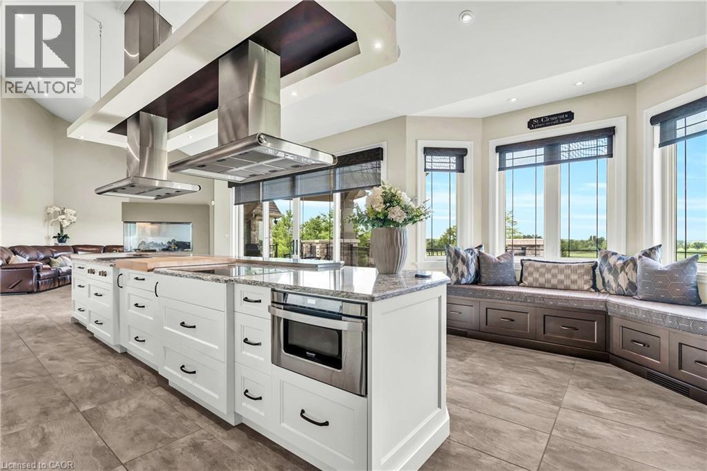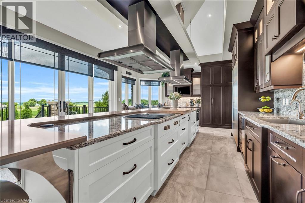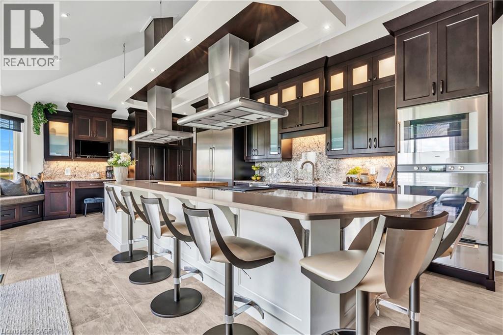 A rare offering in the prestigious countryside of St. Clements—46 Anita Drive is an 18.28-acre gated luxury estate that elevates refined country living. Beyond the custom iron gates, a 900 ft interlock drive leads to meticulously landscaped grounds revealing a showpiece 12ft granite Inukshuk roundabout. The $1M+ surrounding landscape/hardscape includes spectacular mature gardens and trees, a grand armour stone and granite waterfall cascading into a tranquil pond-crafted for privacy and prestige. Main residence exterior is a complementary blend of brick, stone and stucco spanning 7,325 sf on 3 levels. Radiant in-floor heating and Savant smart home automation throughout including garages. Vaulted ceilings, detailed poplar, oak and maple millwork and handcrafted finishes elevate every space. The home is filled with character and grandeur, featuring a double staircase leading from the upper deck down to the lower patio. At the heart of the home, a designer chef’s kitchen features Gaggenau appliances including range, teppanyaki, charcoal grill, 17 ft Cambria/Caesarstone quartz island, Cambria counters and backsplashes seamlessly flow into the sunlit family room that shares a 3-sided gas fireplace. The primary suite is a private retreat with a spa-like 9-piece ensuite, heated floors, surround sound, serene turret sitting area and boutique-style dressing room. The walk-out lower level is an entertainer’s dream-offering a custom bar, custom natural stone floor-to-ceiling gas fireplace, home theatre, gym & guest rooms. A 3,500 sf heated workshop/coach house with 11 ft ceilings and triple garage doors offers a workshop paradise or auxiliary residence conversion potential. In addition there is also a 2,468 sf steel storage building with custom steel pallet racking for 72 skids completes this extraordinary estate. Has potential for a unique equestrian setup. Fully irrigated around all three building perimeters, zoned A1 Agricultural, and min. to Waterloo and highway access. (id:4069)