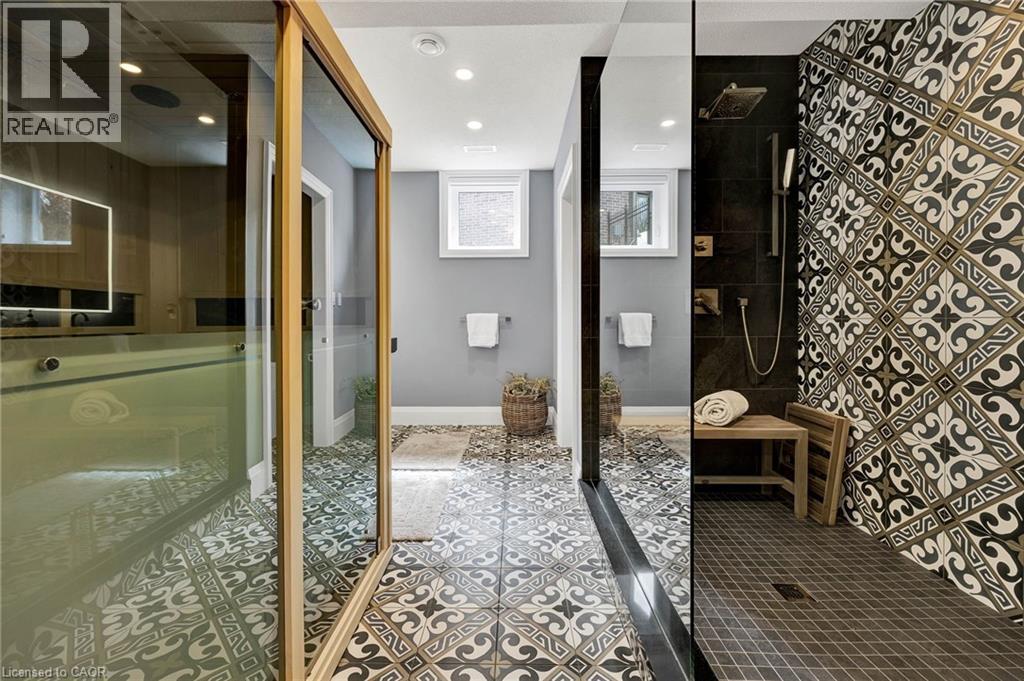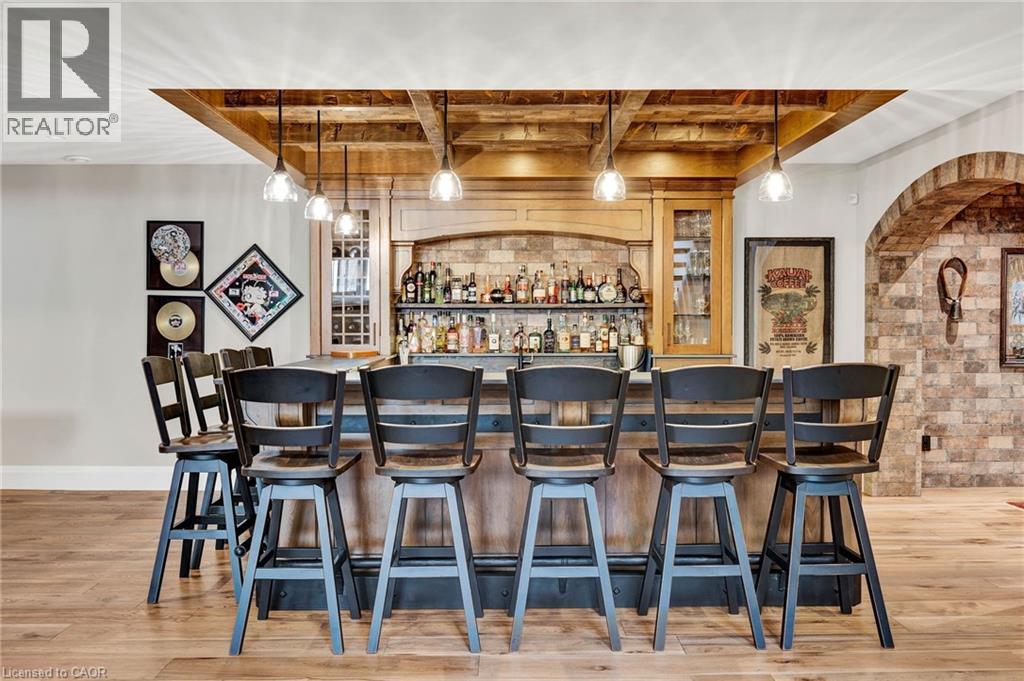 Located in the prestigious Deer Ridge community, this custom-built home stands apart for its thoughtful design, refined finishes, and award-winning features. Every detail from the materials selected to the layout of each space has been crafted with purpose. The main level features a chefs kitchen with dovetail soft-close cabinetry, quartz countertops and backsplash, a Wolf gas range, and a striking wrought iron hood. White oak ceiling beams add warmth, while a large island provides the perfect space for gathering. The kitchen flows into a dedicated dining space illuminated by oversized windows. A full-height custom stone fireplace anchors the great room, leading seamlessly into a cozy sunroom with a second fireplace and views of the backyard. Also on the main floor are a spacious laundry/mudroom, a private office, and a second bedroom. The primary suite is a private retreat with coffered ceilings, large windows, a custom walk-in closet, and an elegant ensuite featuring a tiled walk-in shower, soaker tub, and double vanity with gold accents. The basement is built for both wellness and entertainment, featuring two more bedrooms, a bright indoor pool, fully equipped fitness room, and a luxurious bathroom recognized with an NKBA Ontario Honourable Mention. Entertain in style in the custom Scotch Room and award-winning wet bar featuring double fridges, glass-front cabinetry, and interior lighting. This bar earned 1st place by NKBA Ontario awards and 2nd nationally by the Decorators & Designers Association of Canada. A built-in entertainment unit with Sonos sound completes the space. This is a home where luxury meets liveability where every room supports the way you want to live, without compromise. Don't miss this opportunity! Book a private showing today! (id:4069)