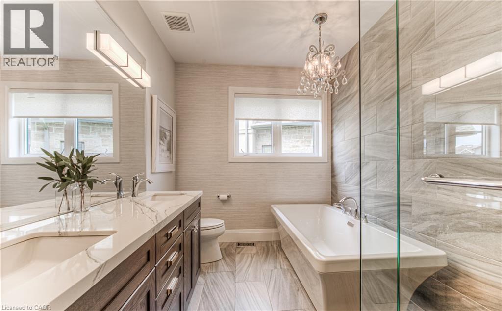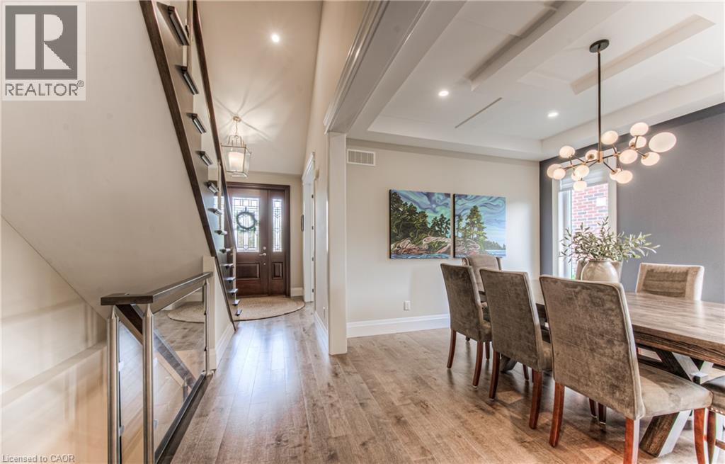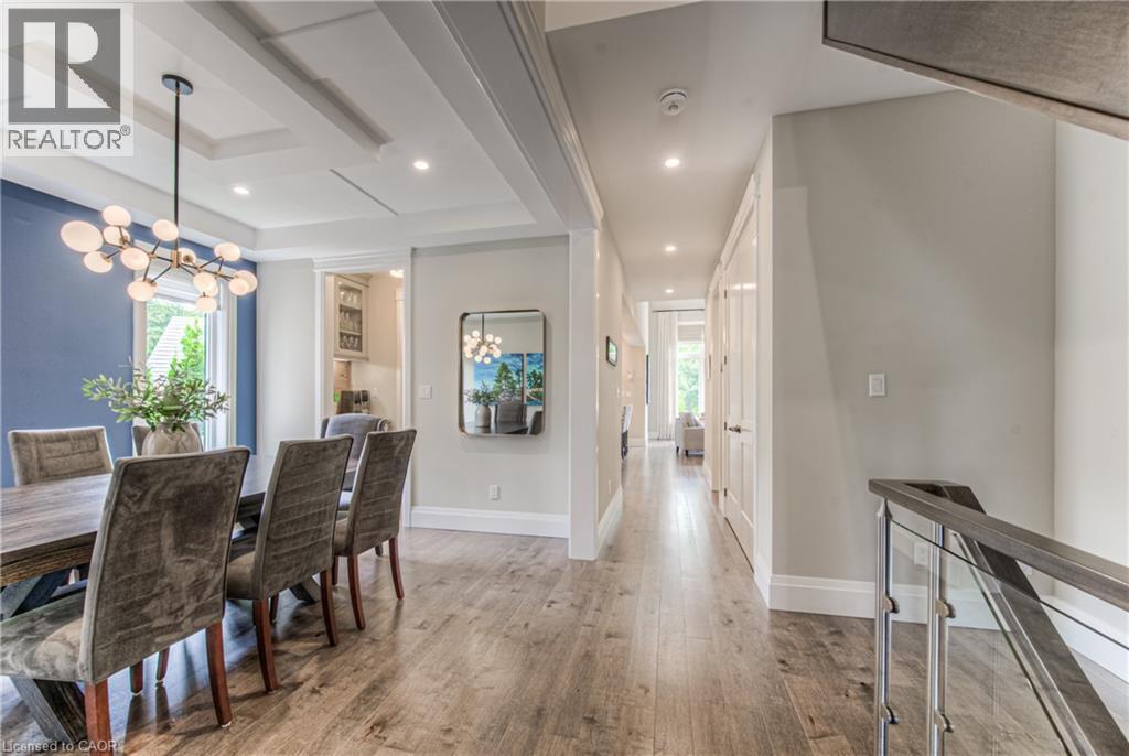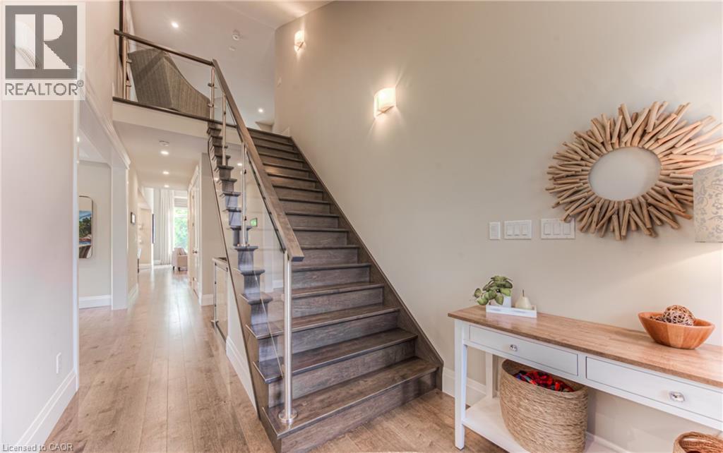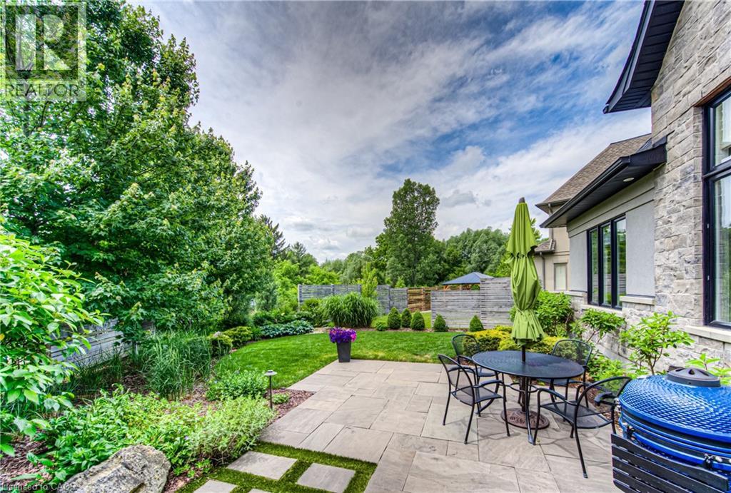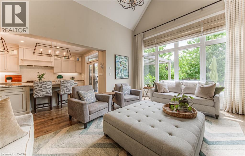 Welcome to a custom-built home that quietly redefines everyday living on one of the most coveted courts in River Ridge - just steps from the winding trails of the Grand River. Set on a peaceful, tree-lined enclave of distinctive custom residences, this executive bungaloft makes an unforgettable first impression with its timeless stone and stucco façade, curated landscaping, and soft architectural lighting. Inside, light pours across warm, elegant spaces designed for both grand entertaining and quiet moments. A dramatic glass-railed staircase anchors the main level, while a private office offers a serene place to work or unwind. The dining room sets the tone for memorable evenings, defined by a striking coffered ceiling and connected seamlessly to the kitchen through a fully appointed butler’s pantry. At the heart of the home, the chef’s kitchen is as beautiful as it is functional, appointed with Cambria quartz surfaces and professional-grade appliances including a six-burner range and oven from Miele, a built-in refrigerator from Sub-Zero, and a dishwasher by Miele. Here, conversations flow effortlessly into the soaring great room, where custom built-ins, a floor-to-ceiling stone fireplace, vaulted ceilings, and Hunter Douglas blinds create a space that feels both grand and inviting. The main-floor primary suite is a private sanctuary - calm, refined, and beautifully appointed with a spa-inspired ensuite designed for true relaxation. Upstairs, the loft level offers a world of its own. Two generous bedrooms, a full bath, and an airy family room create the perfect retreat for children or guests. Outdoors, enjoy summer evenings under the awning, weekend dinners on the flagstone patio, and quiet morning coffee surrounded by lush gardens. Every space has been designed to bring ease and enjoyment to daily living. This is more than a home - it’s a place where custom design, nature, and community come together. (id:4069)