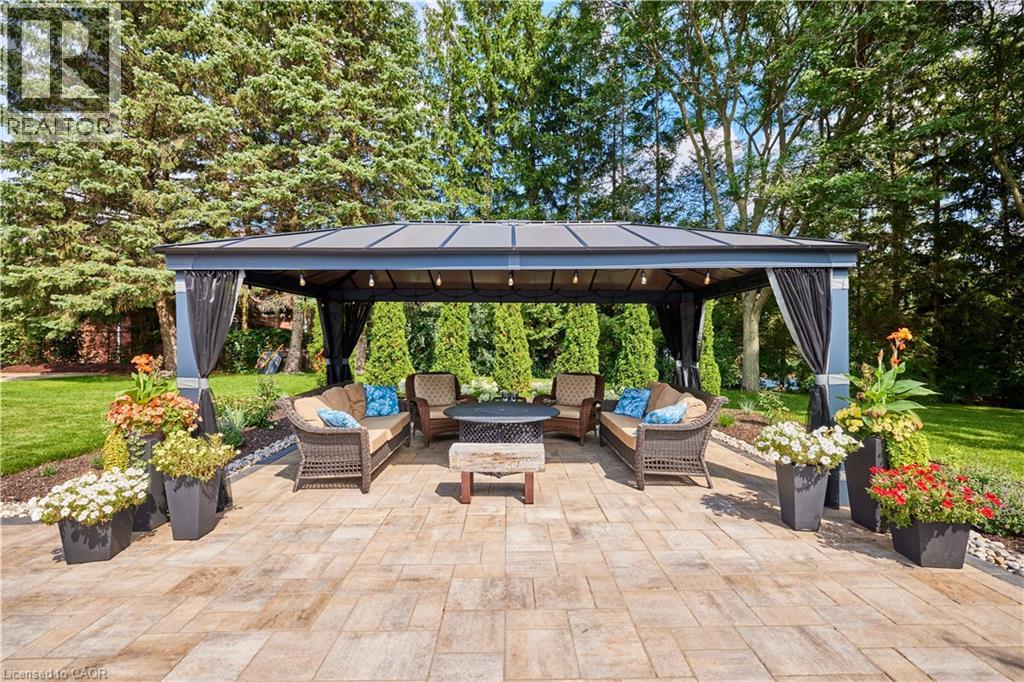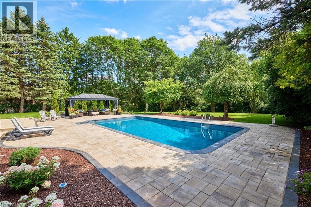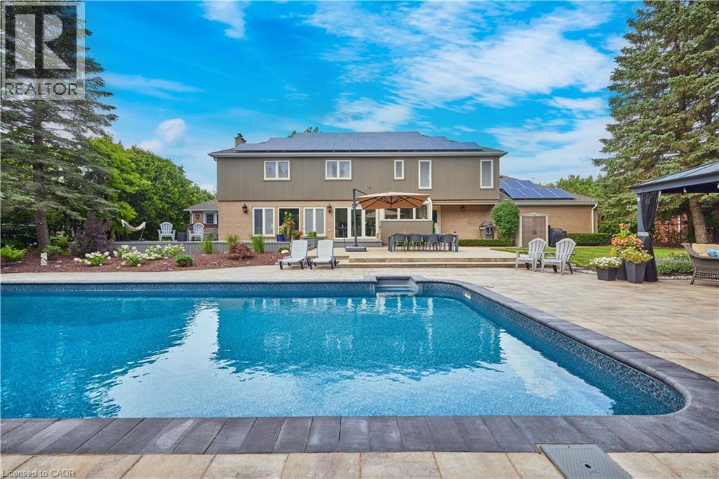 Set on one of Waterloo’s most exclusive streets and backing directly onto the forest of Anndale Park, this executive Colonial Acres property offers a lifestyle rarely found within city limits. Positioned on a rare lot just shy of three-quarters of an acre, the setting delivers exceptional privacy, mature landscaping, and a daily connection to nature. Built by renowned local builder R. Frede Construction, known for quality craftsmanship and timeless design, this home carries a level of construction rarely found today. The backyard is designed for how people truly live and entertain, featuring an inground pool, expansive stone patio, and a covered gazebo that creates a true outdoor living space for summer evenings and relaxed gatherings. Inside, offering roughly 5,300 sq ft of finished living space, the home is defined by its scale, natural light, and thoughtful design. A chef-inspired kitchen anchors the main floor with a substantial quartz island, premium appliances, custom cabinetry, and a walk-in pantry—ideal for both everyday living and entertaining. The adjoining family living areas are expansive and lined with windows, creating bright, open spaces that bring the outdoors in, complemented by two wood-burning fireplaces that add warmth and character. Upstairs, four generously sized bedrooms provide exceptional comfort, including a primary suite with a refined ensuite and heated floors, along with a secondary ensuite ideal for guests or older children. The lower level extends the lifestyle with space for recreation, fitness, and a private sauna. An oversized double garage and wide driveway complete the home. A rare opportunity combining land, privacy, and location, just minutes to RIM Park, Grey Silo, universities, and key amenities. (id:4069)