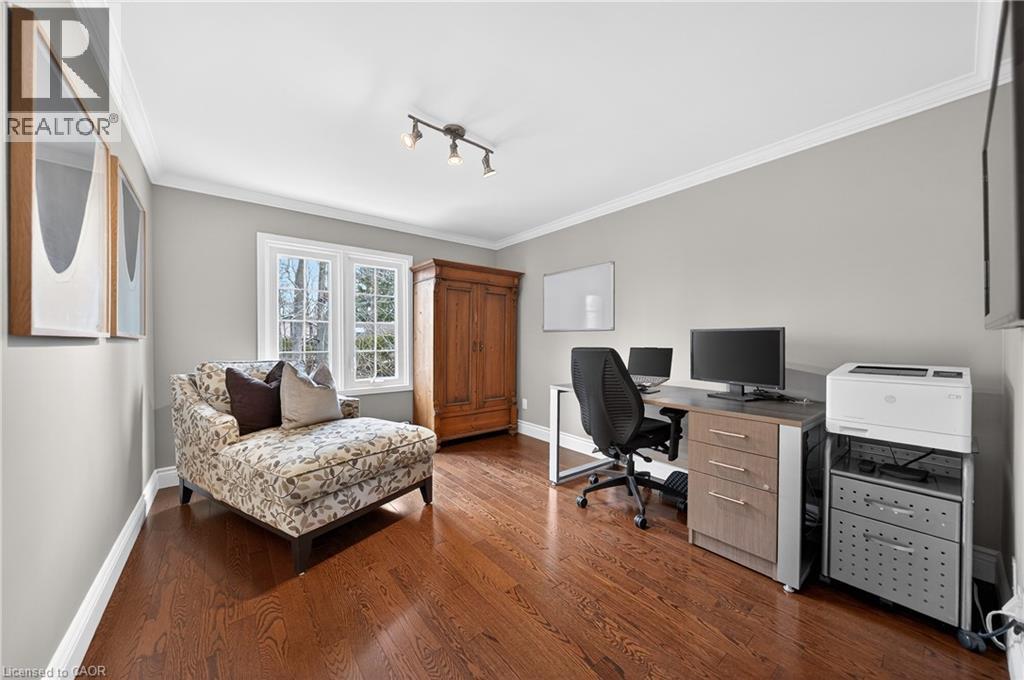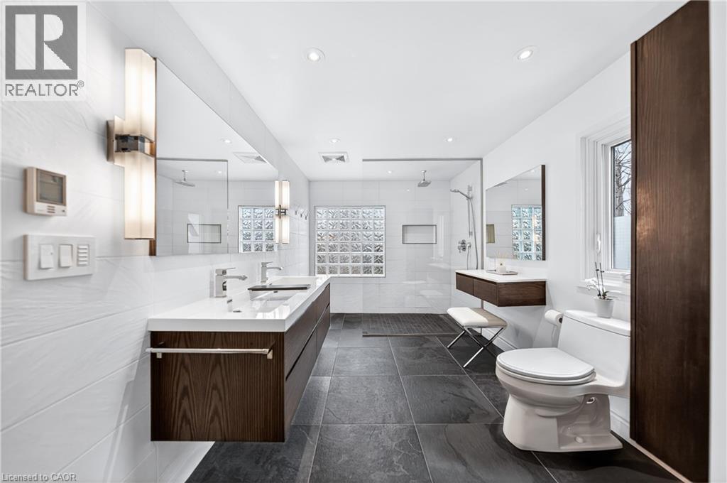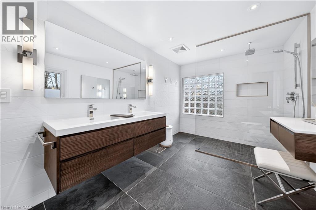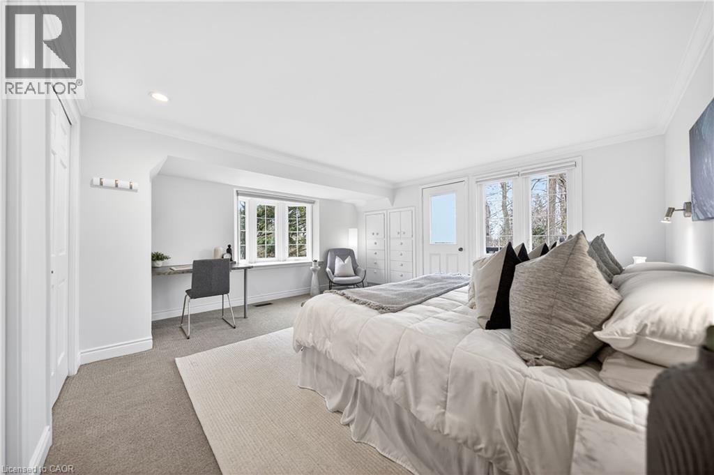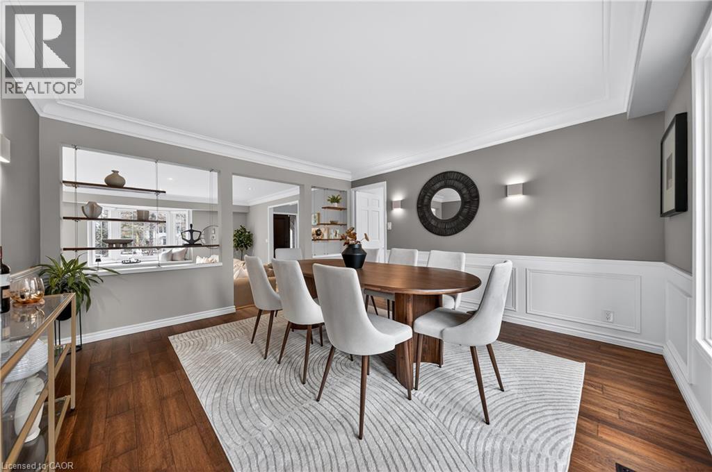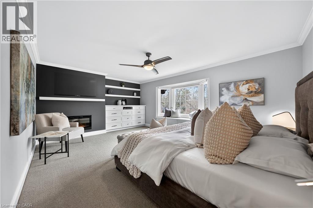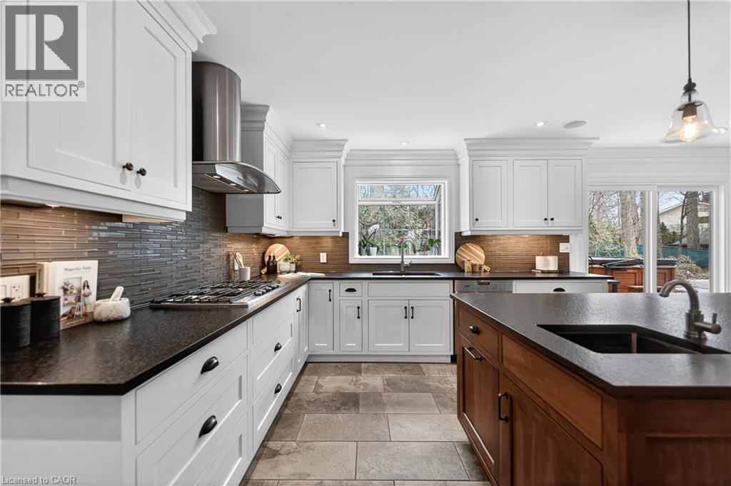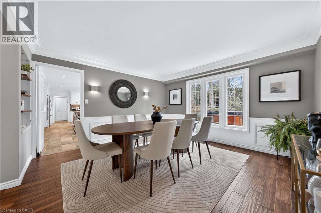 This is the home you have been waiting for. A rare & iconic offering in Old Colonial Acres, one of Waterloo’s most prestigious & established neighbourhoods. Set on an expansive, mature, tree-lined lot of approx. ½ acre, this timeless Tudor-style home offers 4,300+ SF of beautifully finished living space with 5 bedrms, 4 bathrms, extensive updates, exceptional privacy, & a backyard that feels like a private resort. Tucked away on a quiet court & surrounded by mature trees, this home offers a level of tranquility rarely found-true cottage-style living in the city, just mins to universities, major employers, & everyday amenities. Designed for both entertaining & everyday living, the bright & spacious layout features a grand 2-storey foyer, impressive great rm with gas FP & bay window, & a formal dining rm. The updated Country Lane kitchen is the heart of the home, complete with heated slate flrs, premium appliances, & oversized island with seating for 6, with direct backyard access for seamless indoor-outdoor living. A functional mudrm with built-ins, garage access, & a well-placed powder rm with backyard entry add convenience. The upper level offers 5 generous bedrms, highlighted by a hotel-inspired primary retreat, with custom feature wall with electric FP, sitting area, walk-in dressing rm with built-ins & laundry area, & a beautifully updated spa-like ensuite with dual floating vanities & oversized glass walk-in shower. 4 additional bedrms (3 with balcony access), an updated 5-pc main bath, & 361 SF attic completes the upper level. The finished lower level adds valuable additional living space complete with a rec rm with gas FP, exercise area, games rm, & 2-pc bathrm. Outdoors, the private backyard features an inground pool, expansive patio, covered seating area, & multiple outdoor living spaces-creating a true oasis. This home blends privacy, timeless architecture, & a resort-like lifestyle just mins to universities, Conestoga Mall, parks, trails, & major routes. (id:4069)
