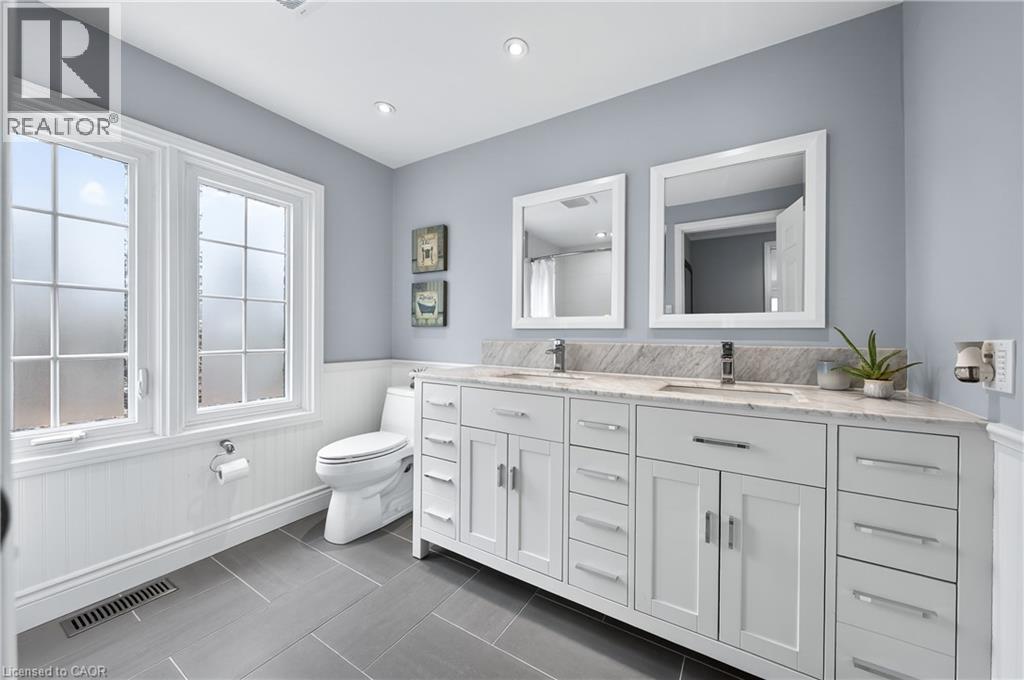 This is the home you have been waiting for. A rare & iconic offering in Old Colonial Acres, one of Waterloo’s most prestigious & established neighbourhoods. Set on an expansive, mature, tree-lined lot of approx. ½ acre, this timeless Tudor-style home offers 4,300+ SF of beautifully finished living space with 5 bedrms, 4 bathrms, extensive updates, exceptional privacy, & a backyard that feels like a private resort. Tucked away on a quiet court & surrounded by mature trees, this home offers a level of tranquility rarely found-true cottage-style living in the city, just mins to universities, major employers, & everyday amenities. Designed for both entertaining & everyday living, the bright & spacious layout features a grand 2-storey foyer, impressive great rm with gas FP & bay window, & a formal dining rm. The updated Country Lane kitchen is the heart of the home, complete with heated slate flrs, premium appliances, & oversized island with seating for 6, with direct backyard access for seamless indoor-outdoor living. A functional mudrm with built-ins, garage access, & a well-placed powder rm with backyard entry add convenience. The upper level offers 5 generous bedrms, highlighted by a hotel-inspired primary retreat, with custom feature wall with electric FP, sitting area, walk-in dressing rm with built-ins & laundry area, & a beautifully updated spa-like ensuite with dual floating vanities & oversized glass walk-in shower. 4 additional bedrms (3 with balcony access), an updated 5-pc main bath, & 361 SF attic completes the upper level. The finished lower level adds valuable additional living space complete with a rec rm with gas FP, exercise area, games rm, & 2-pc bathrm. Outdoors, the private backyard features an inground pool, expansive patio, covered seating area, & multiple outdoor living spaces-creating a true oasis. This home blends privacy, timeless architecture, & a resort-like lifestyle just mins to universities, Conestoga Mall, parks, trails, & major routes. (id:4069)