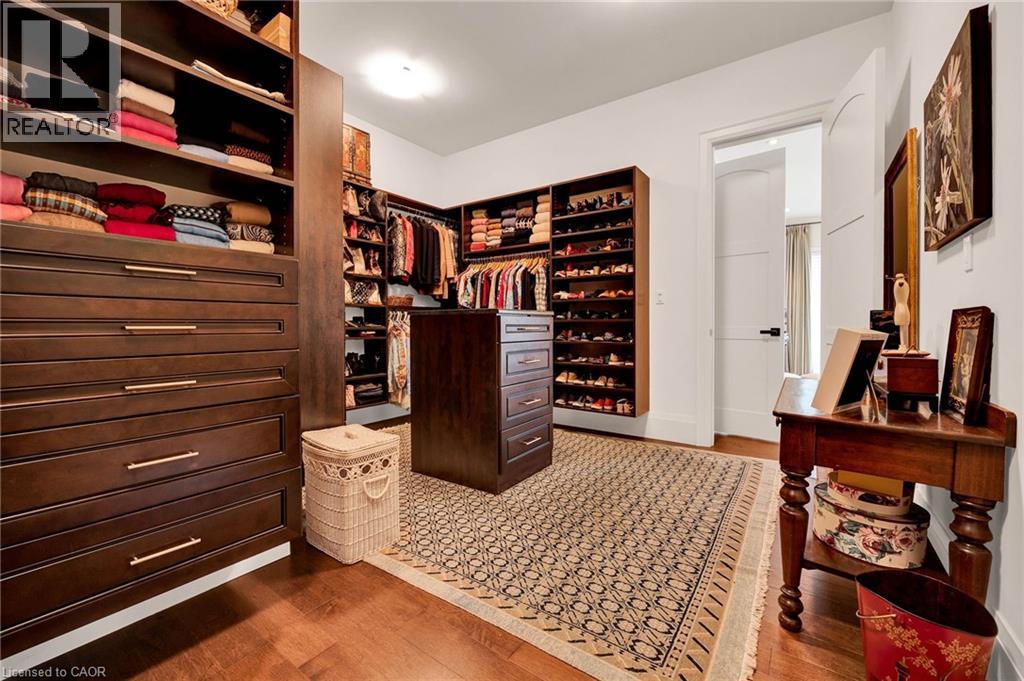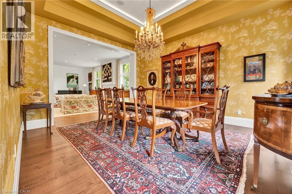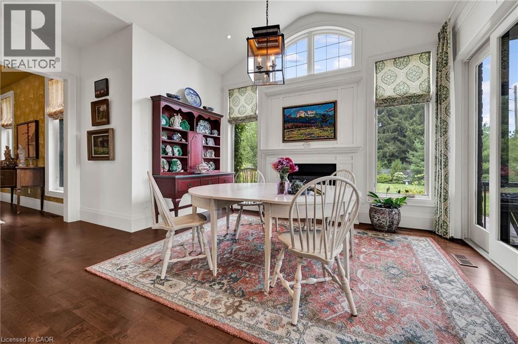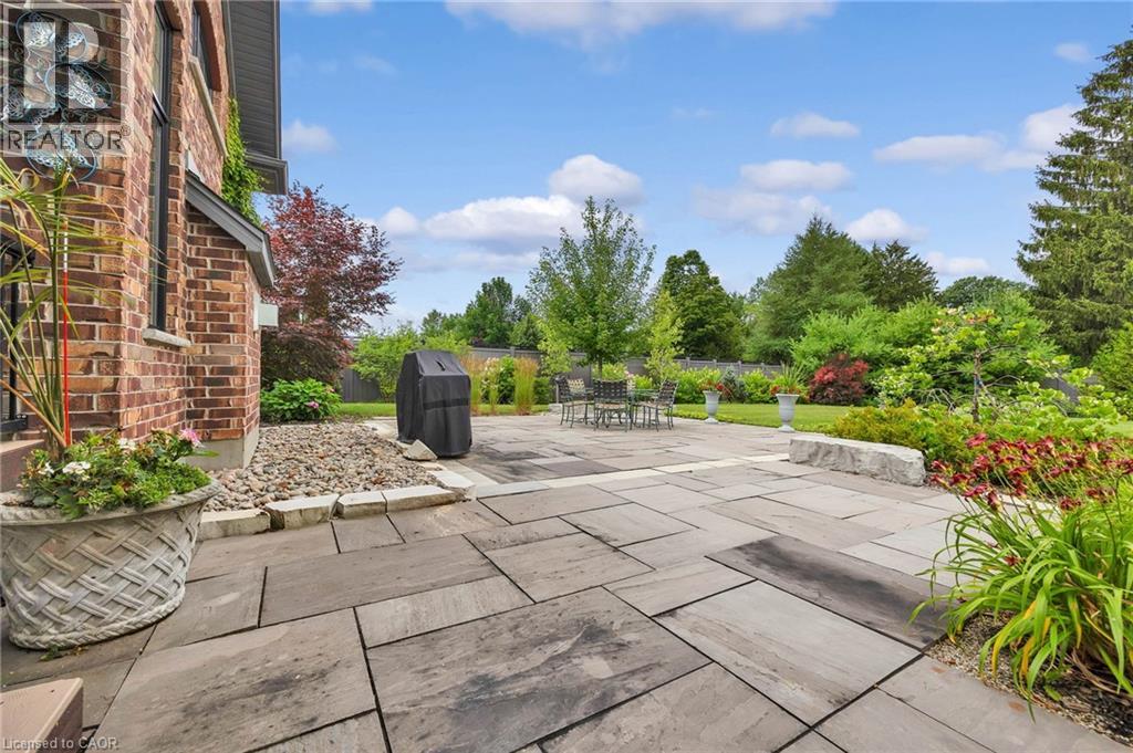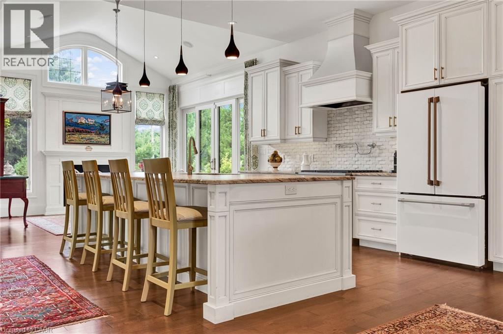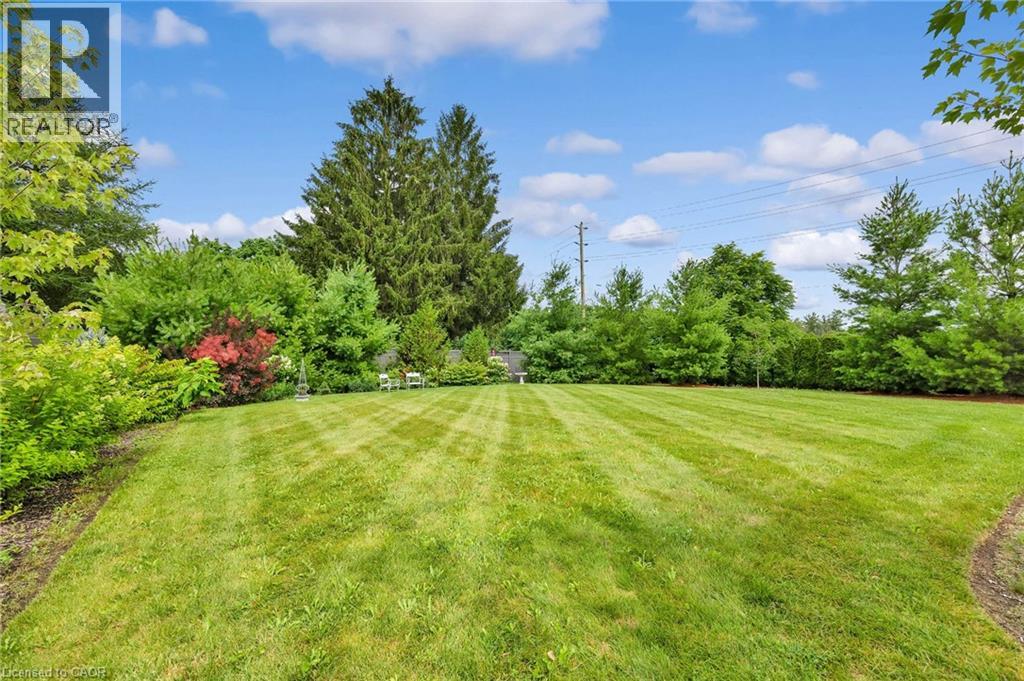 Welcome to 585 Regal Place, a vibrant and distinguished former model home set on a beautifully landscaped corner lot in one of Waterloo’s most desirable and well-maintained enclaves. Nestled on a quiet cul-de-sac, this custom-built bungalow offers over 4,300 sq. ft. of finely curated living space, including more than 3,500 sq. ft. on the main floor, plus an oversized triple-car garage with high ceilings and a workshop area. The cobblestone driveway and covered entry make a striking first impression, leading into an expansive foyer where soaring 10-foot ceilings and an open, flowing layout instantly convey energy and light. Expansive rear windows draw the eye to views of the private gardens and backyard, enhancing the uplifting feel of the home. The executive kitchen is a central hub, featuring custom cabinetry, granite counters, a generous island, and professional-grade appliances. It flows seamlessly to the breakfast area and covered porch, creating an effortless connection between indoor and outdoor living. Formal dining and living spaces are enriched with statement lighting, rich wood flooring, and gallery-like wall space perfect for showcasing art. The primary suite offers a calm retreat, highlighted by a spa-inspired ensuite with a double-sided fireplace, soaker tub, and custom dressing room. Two additional bedrooms, including one with an ensuite, a dedicated office, and main-floor laundry add comfort and flexibility, while the finished lower level provides guest space and areas for recreation or fitness. Outside, extensive landscaping, mature gardens, and multiple sitting areas create an inviting backdrop for gatherings or quiet moments. Nearby trails, golf courses, the St. Jacobs Farmers’ Market, and top-rated schools add to the lifestyle appeal. This home combines elegant design and vibrant energy with practical function, offering an exceptional place to live and thrive. (id:4069)