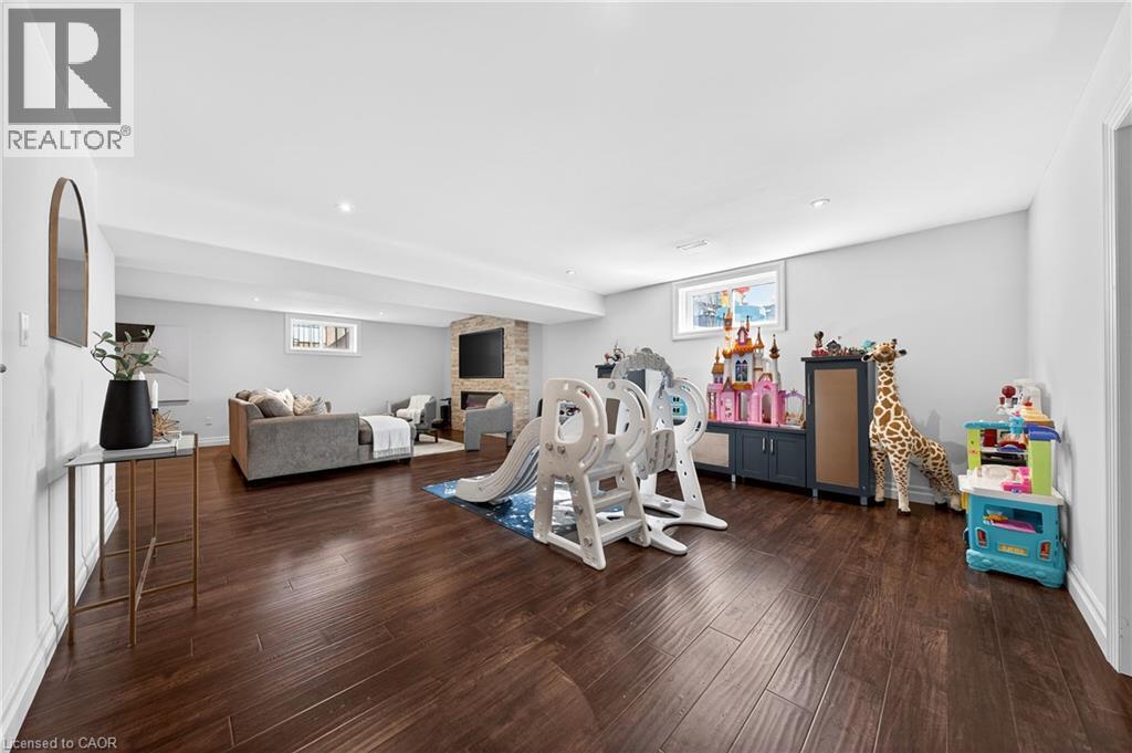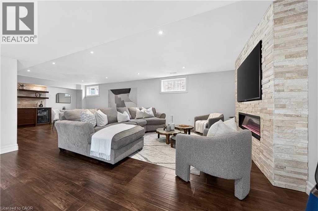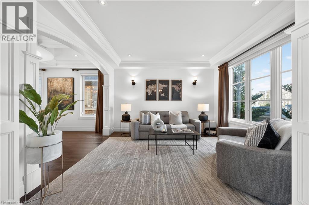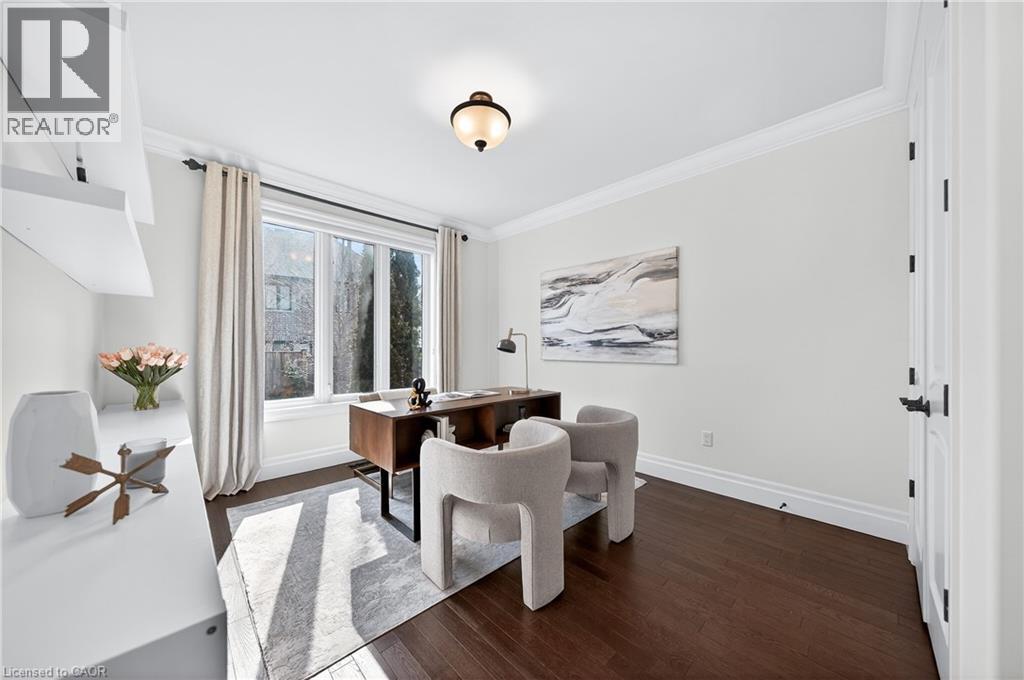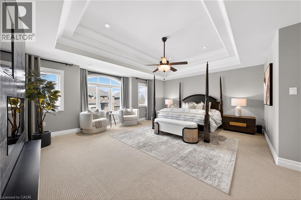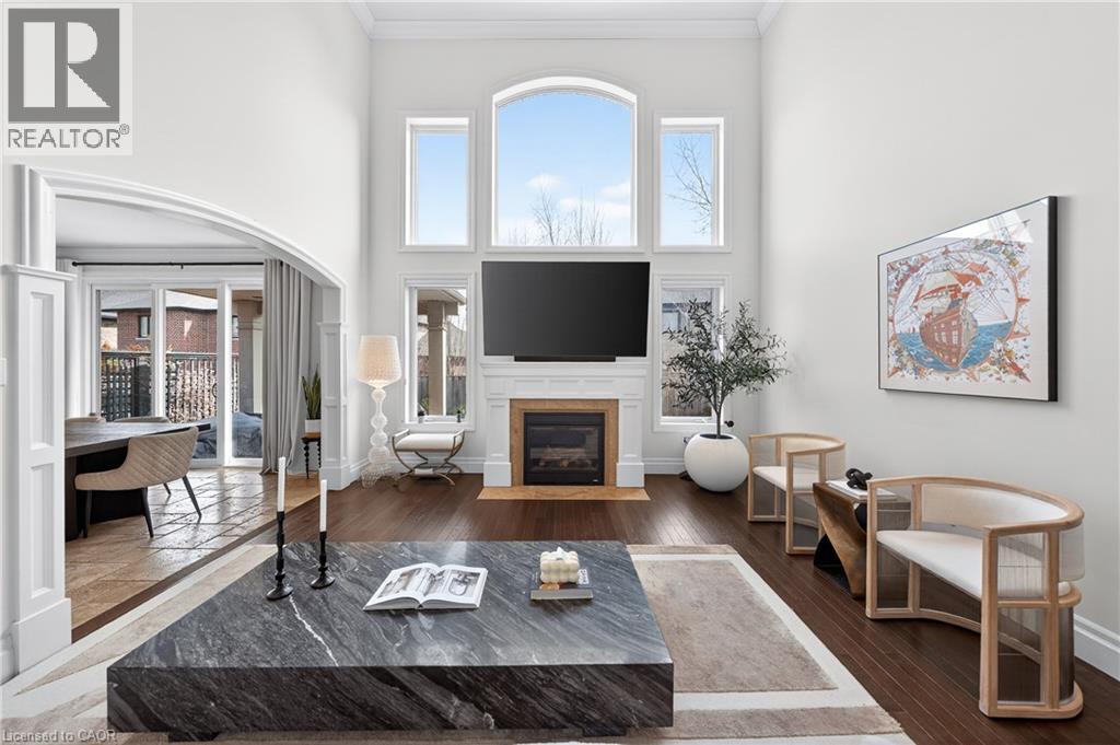 This is your Carriage Crossing dream home. Welcome to 325 Deerfoot Trail, located in one of Waterloo’s most sought-after communities. This custom Klondike-built home offers 5,300+ SF of beautifully finished living space, with 4+1 bedrms & 4 bathrms, thoughtfully designed with quality craftsmanship, timeless finishes, & functional family living. Step inside the grand entry opening to formal living & dining rms with coffered ceilings & detailed millwork. The home is anchored by a stunning 2-storey great rm with gas fireplace & oversized windows flooding the space with natural light. The well-appointed Chervin kitchen features a lrg centre island, granite counters, premium appliances, under-cabinet lighting, backsplash, & a bright breakfast area with walkout to the backyard & covered back porch. The main flr also offers a private office/potential 6th bedrm, mudrm/laundry rm, & powder rm. Upstairs offers 4 spacious bedrms, including an expansive primary retreat with tray ceiling, feature wall with linear electric fireplace, sitting area, walk-in closet with built-ins, additional dual closets, & a 5-pce ensuite with dual vanities, tiled glass shower, & jacuzzi tub. 3 additional sizable bedrms & a 5-pce main bathrm complete the upper level. The fully finished lower level features a lrg rec rm with electric fireplace, additional bedrm, 3-pce bathrm, wet bar (in-law potential), & ample storage. Hardwood & natural stone flring, custom ceiling treatments, crown moulding, curated millwork, & custom window coverings throughout. Set on a professionally landscaped lot with interlocking driveway, covered back porch, expansive patio, & fully fenced private backyard with mature trees, hardscaping, & perennial gardens. Located just mins to top-rated schools, U of W & Wilfrid Laurier University, RIM Park, Grey Silo Golf Club, trails, St. Jacobs Market, & major commuter routes. A rare opportunity to own a beautifully finished home in one of Waterloo’s most desirable neighbourhoods. (id:4069)