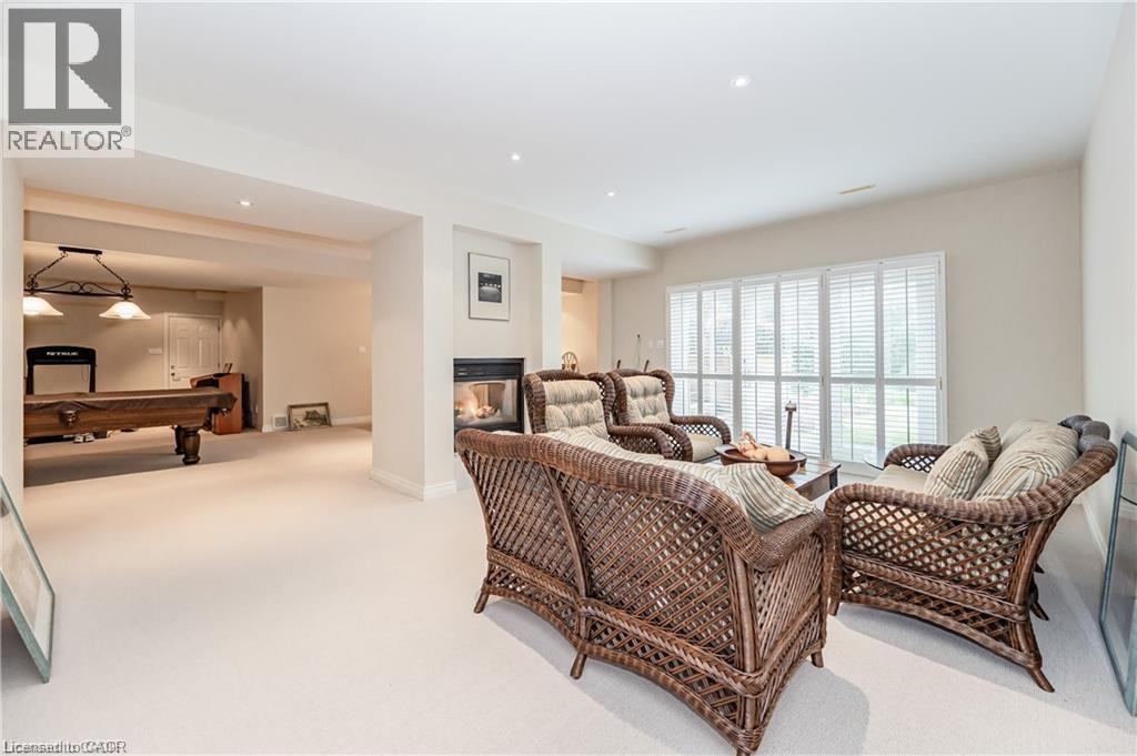 Discover refined living in the prestigious River Oak Estates—where timeless design meets an extraordinary natural backdrop. Set on a lush half-acre lot backing directly onto the Grand River, this 6,000+ sq. ft. residence captures breathtaking views of the water, pond, and Grand River Trail. Thoughtful landscaping enhances its privacy and curb appeal, creating a truly peaceful setting. Inside, sophistication unfolds across three levels, with 5+2 bedrooms and 6 bathrooms offering comfort and flexibility for family and guests. The grand foyer opens to an elegant staircase and sun-filled formal living and dining rooms—ideal for entertaining large gatherings. The kitchen, complete with an oversized island and casual dining space, extends to a spacious deck overlooking the river. A stone wood-burning fireplace anchors the family room, where floor-to-ceiling windows frame the scenic outdoors. The main floor suite is a private retreat featuring a gas fireplace, walk-in closet, and balcony access. Its luxurious ensuite includes dual vanities, a soaker tub surrounded by windows, and a glass walk-in shower. Upstairs, you’ll find four additional bedrooms, a home office with custom built-ins, and a dedicated media room. The lower level offers two more bedrooms, a 3-piece bath, wet bar, games area, and walkout access to a stone patio and landscaped gardens—perfect for indoor-outdoor living. Blending comfort, elegance, and a rare connection to nature, this River Oak Estates home delivers a lifestyle as remarkable as its setting. (id:4069)